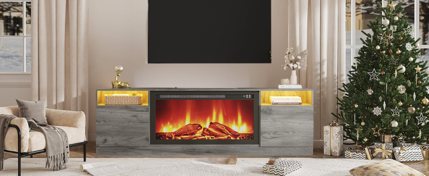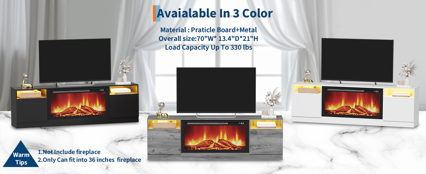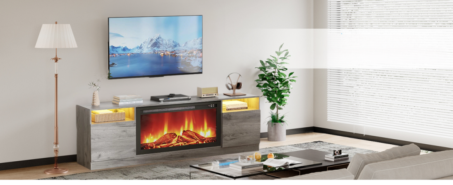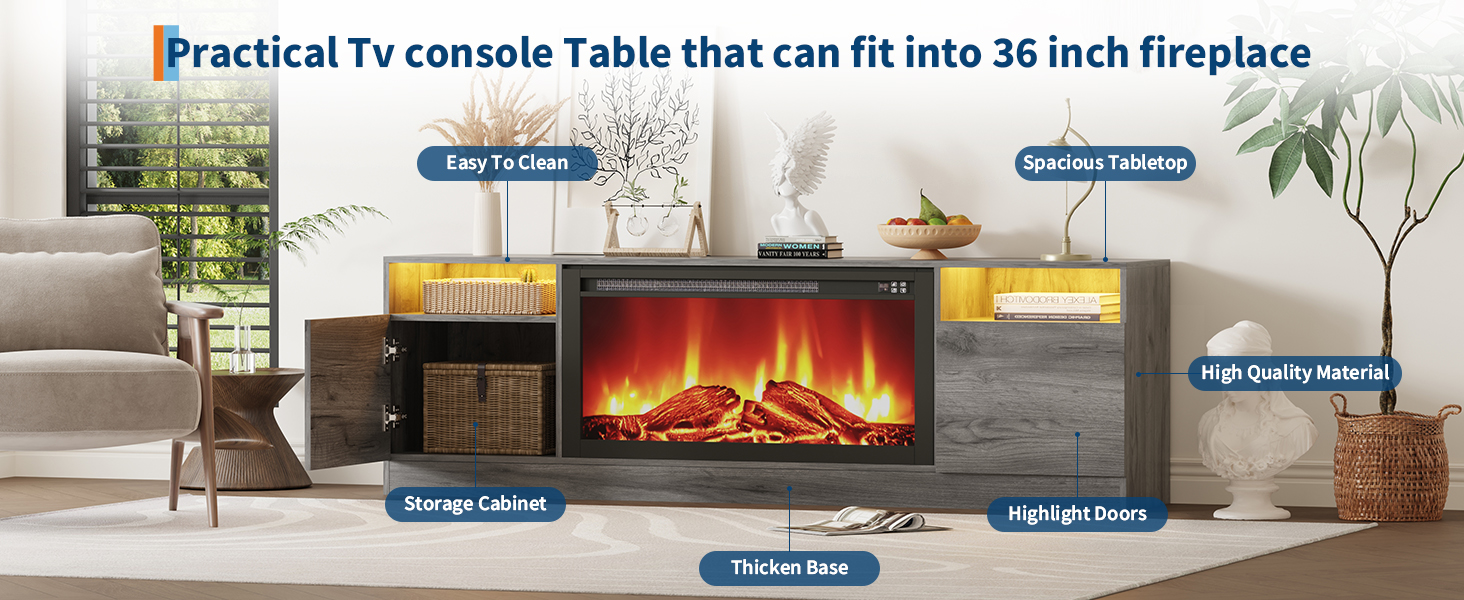 Garvee Modern TV Stand for TV Up to 75" TV, 70" Grey Television Console Table Cabinets with Storage,Wooden Entertainment Center for Living Room, Fits Into 36'' Electric Fireplace(Not Included Fireplace)