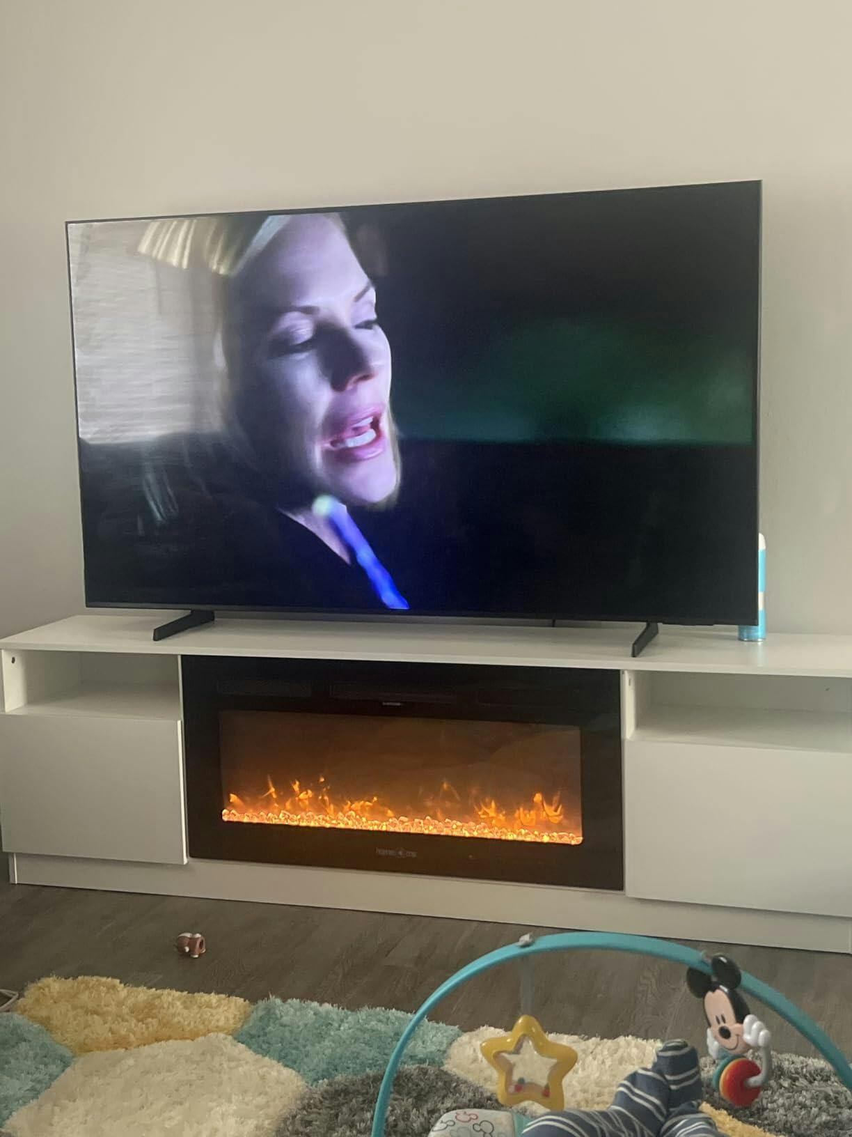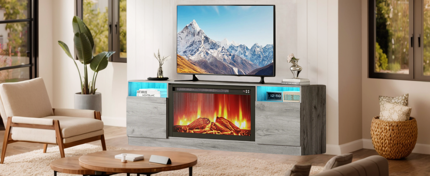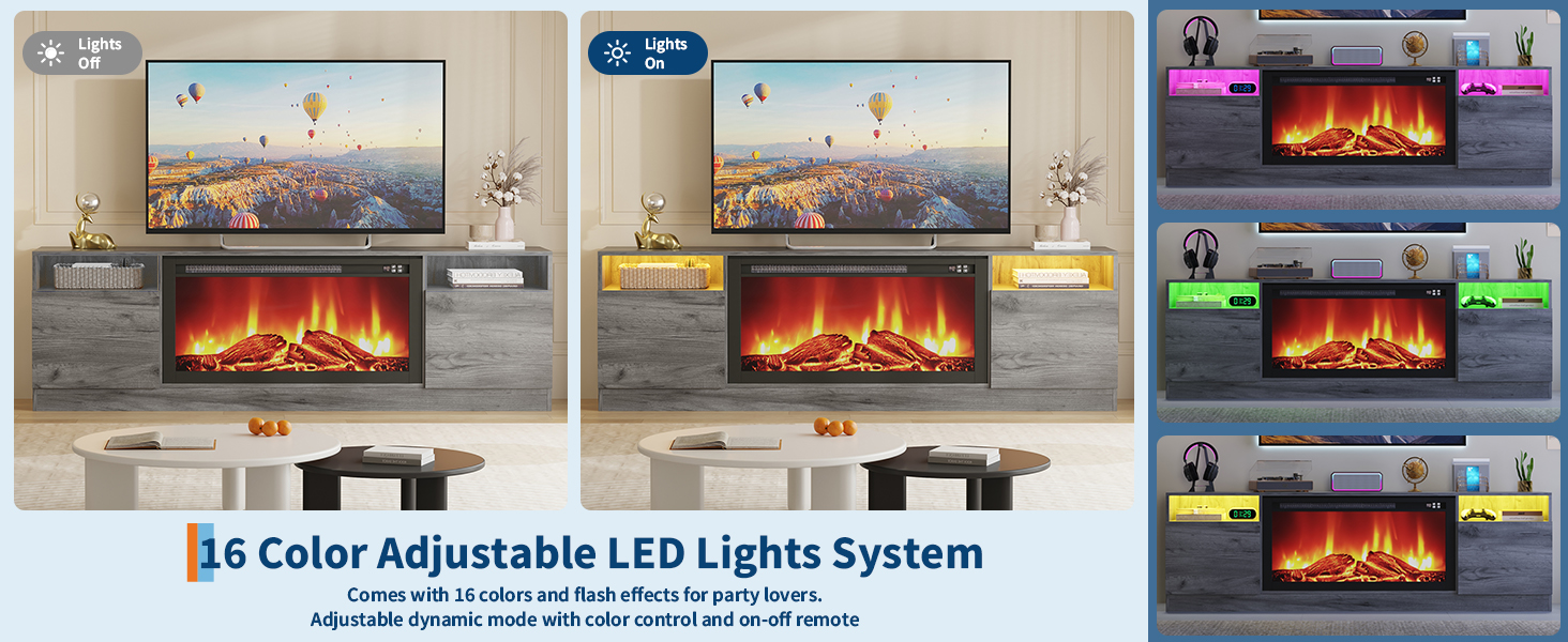 Garvee Modern TV Stand for TV Up to 75" TV, 70" Grey Television Console Table Cabinets with Storage,Wooden Entertainment Center for Living Room, Fits Into 36'' Electric Fireplace(Not Included Fireplace)