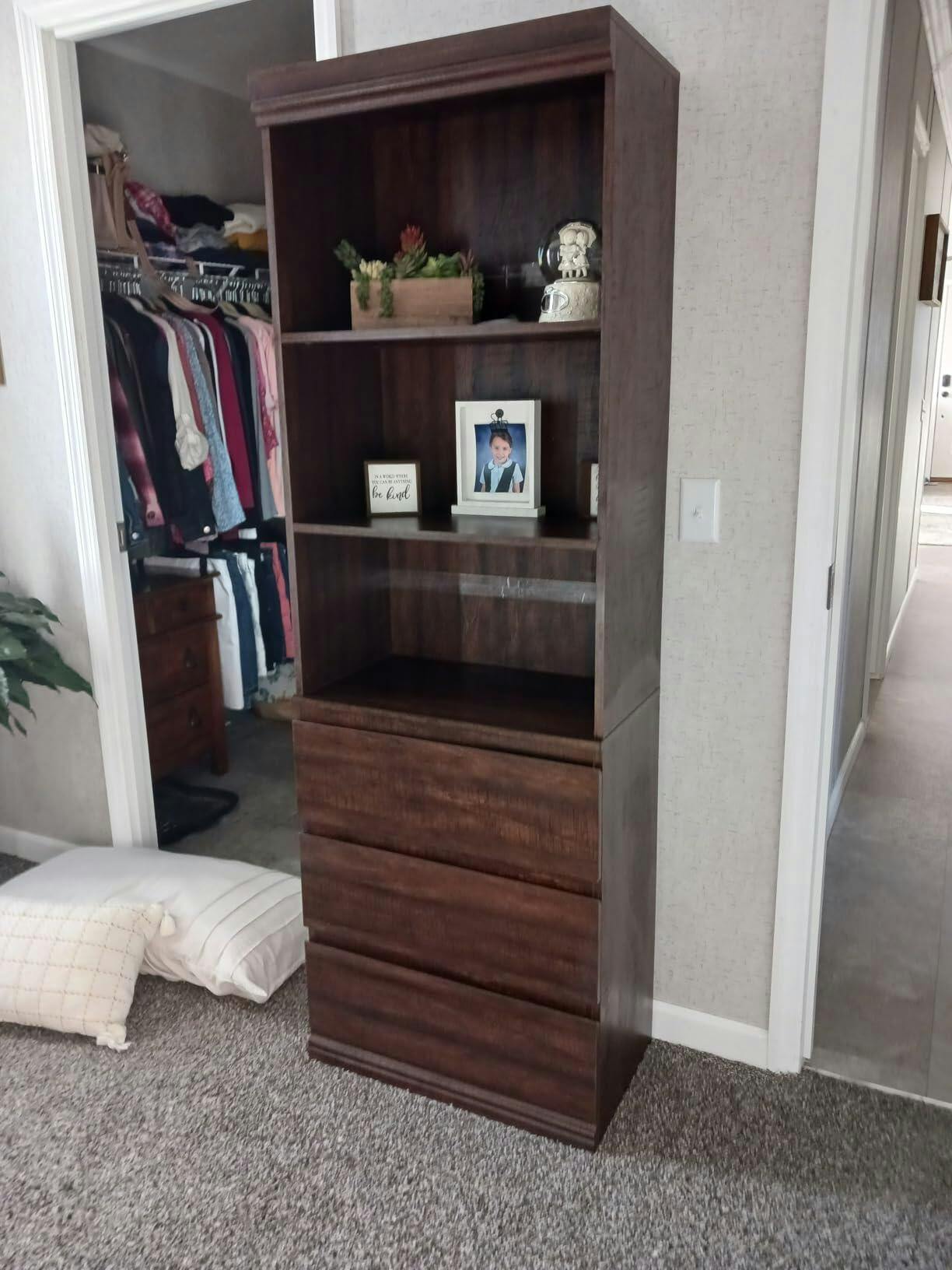 Garvee 70" Farmhouse StyleTall Bookcase with 3 Drawers