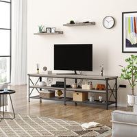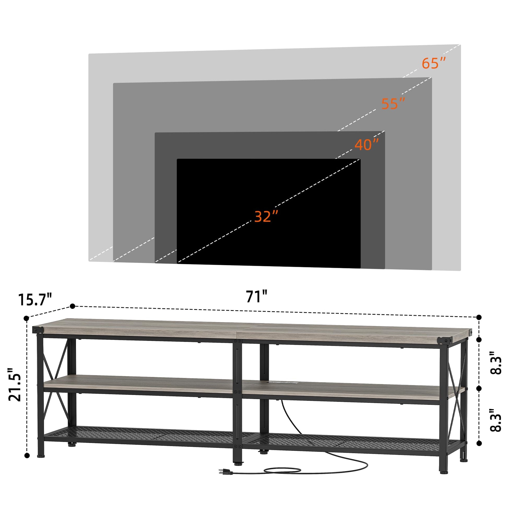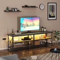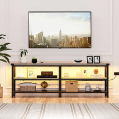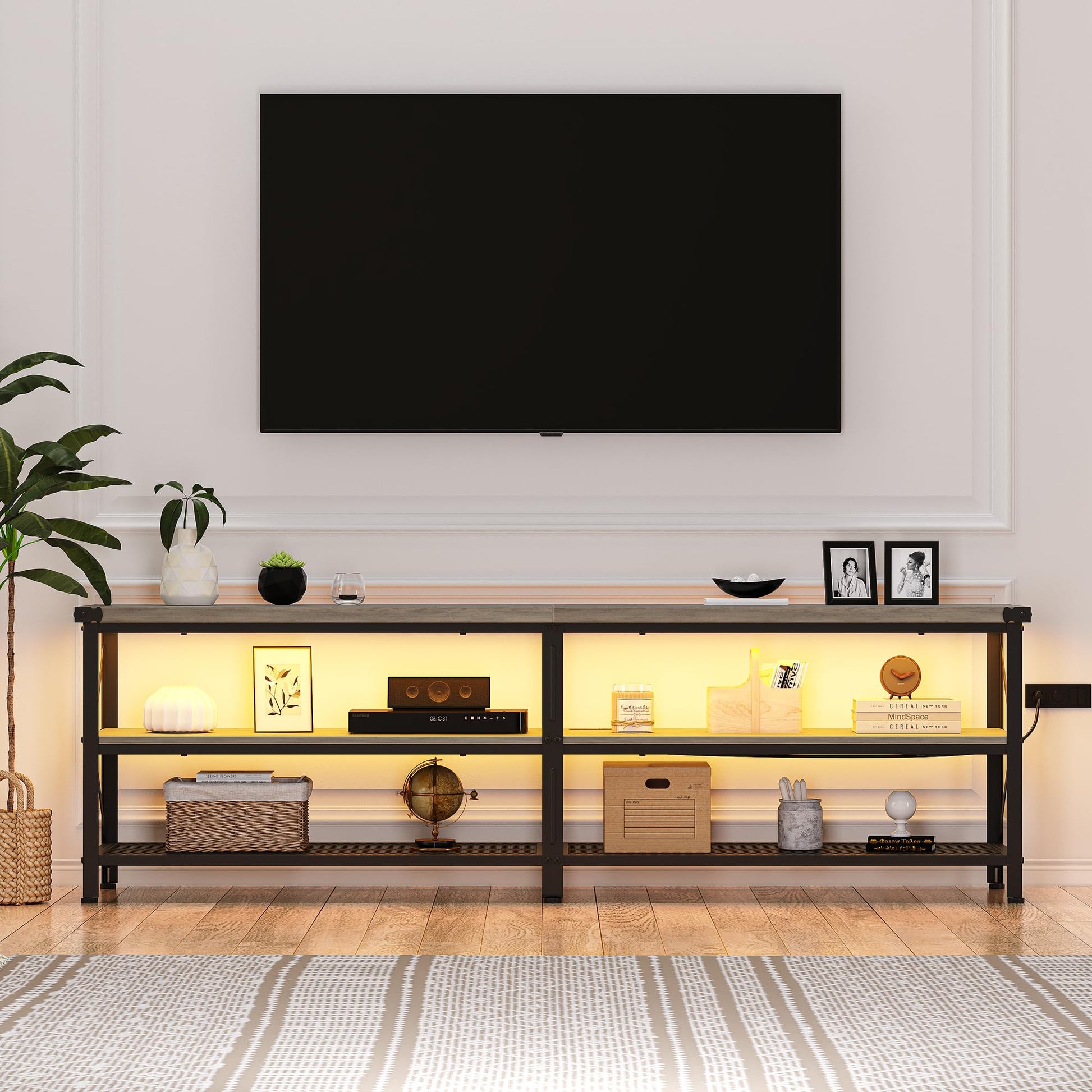 Garvee LED TV Stand with Shelves & Outlets, Industrial MDF & Metal, 80" TV Console, Remote-Controlled RGB, Living Room/Gaming