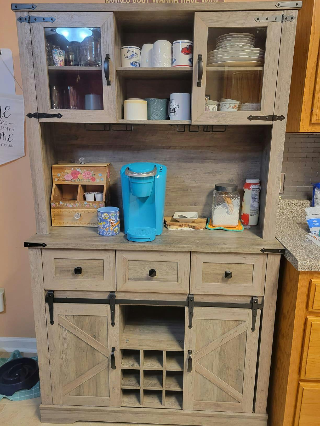 - Multipurpose Cabinet: This versatile piece can be used as an alcohol cabinet, kitchen pantry, china cabinet, coffee bar station, microwave stand, kitchen cupboard, credenza, or storage cabinet