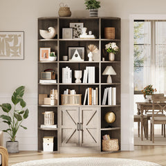 Garvee 75 in Tall Bookshelf with Storage, 6-Tier 47" Wide Modern Farmhouse Standing Bookcase Cabinet Display Shelf Organizer for Home Office Living Room Bedroom, White