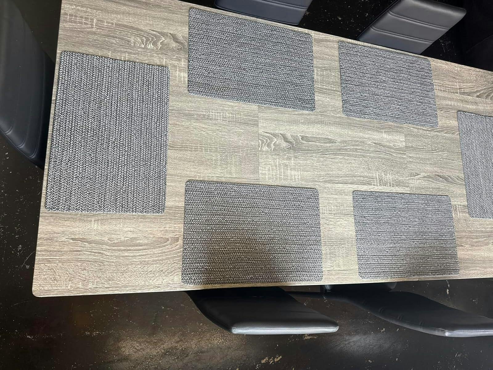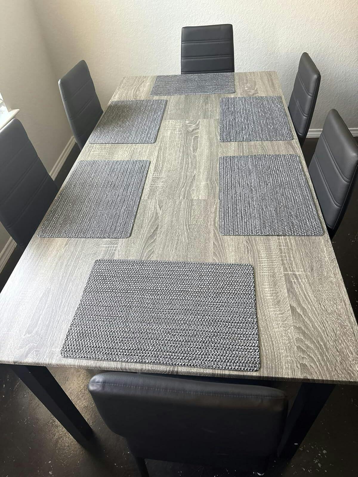 Classic grey wood-grain dining table, modern style with non-scratch surface for lasting beauty.