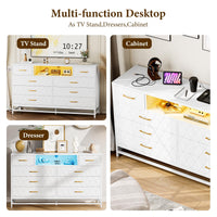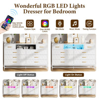 - 【Modern Dresser with Led Lights】This chests of drawers features RGB Led light effects with 20 color variations, 21 dynamic modes, 8 speed modes, and 8 brightness modes. You have full control over the color and brightness of the lights, creating the perfect ambiance for any occasion, ideal for a relaxing evening.