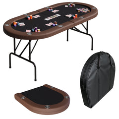 Garvee 8-Player Collapsible Oval Casino-Grade Card Table – 72" Portable Game Table for Texas Hold'em & Blackjack with Cushioned Armrests, Cup Holders, Collapsible Legs & Storage Bag, Brown Edge + Blac