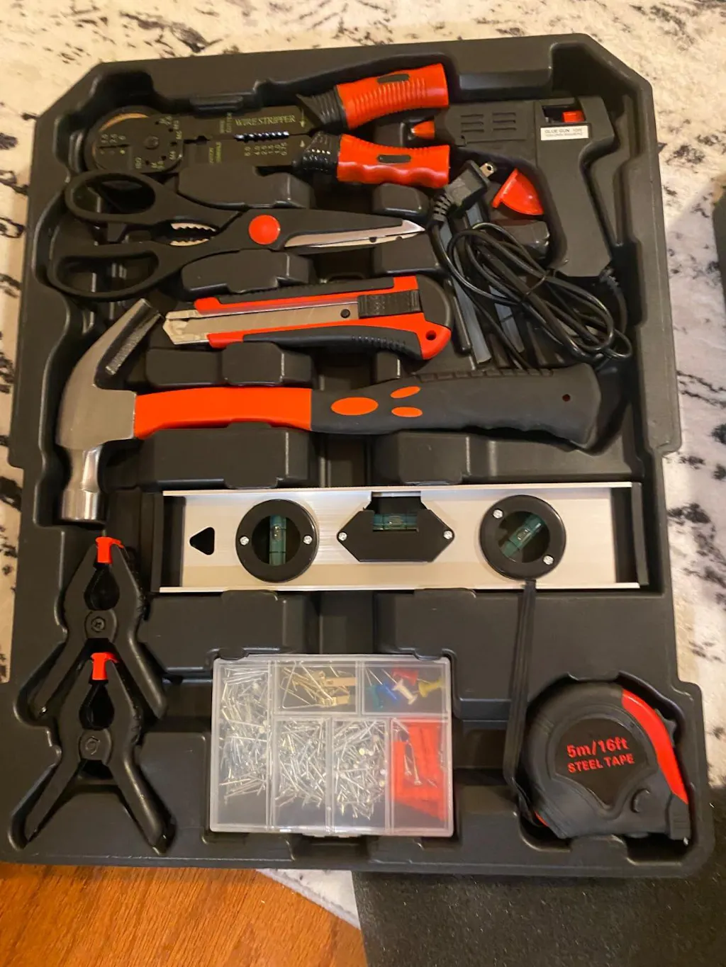 Overall, the quality is budget friendly, but it also is a great value overall. This is excellent for a new home owner or someone who tinkers with various types of small projects. I’ve purchased cheap tools in the past and spent well over the cost for this whole kit. Honestly, I am very pleased with this set. It has tools that I will need once in a while and tools I need quite often. One of the best things of this set is the organization. As an additional feature, each tool tray comes with hook eyelets to mount the tools to the wall. This is a super nice way to add these tools to a workshop wall.