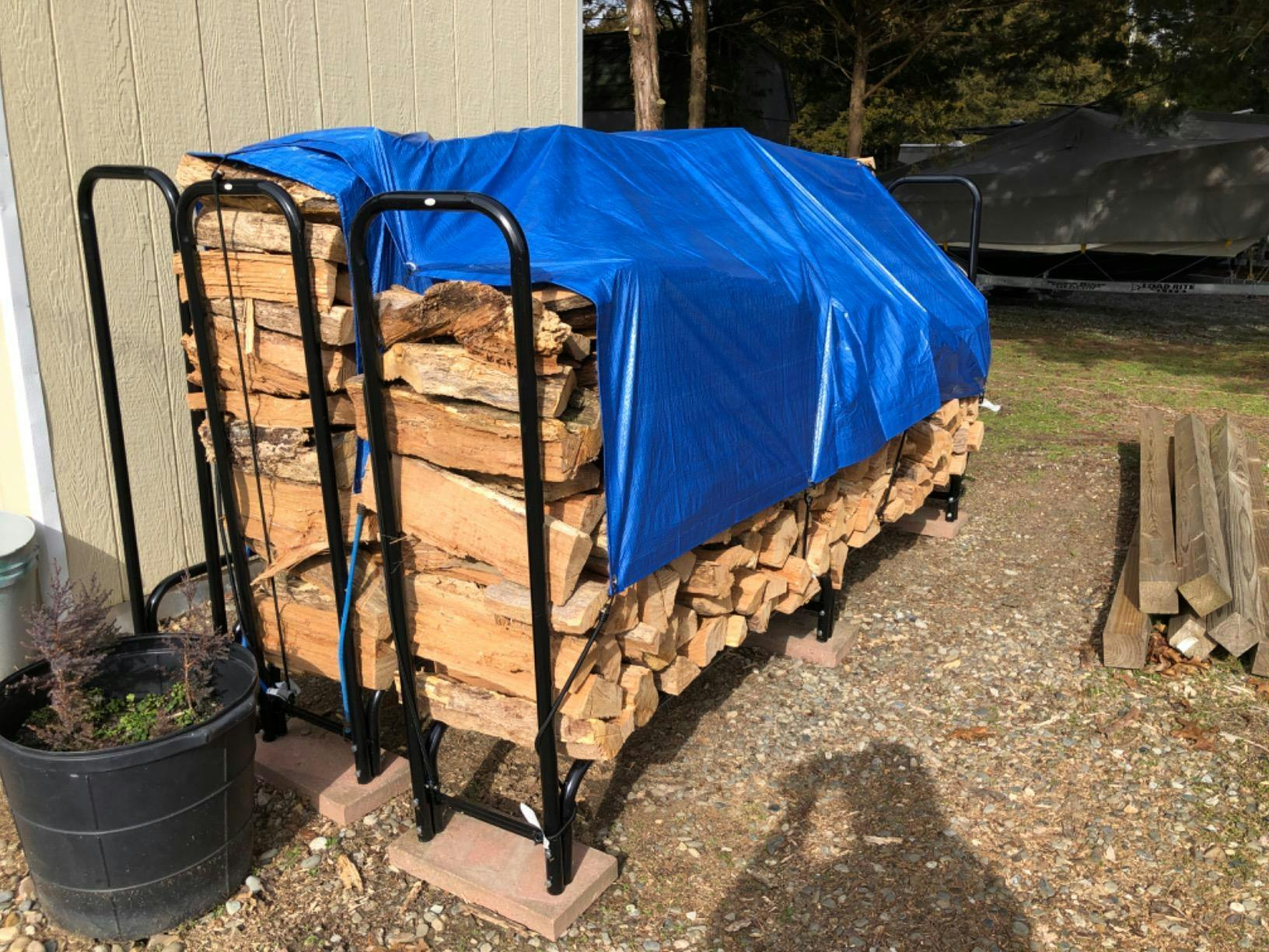 Garvee 8Ft Firewood Rack Stand Heavy Duty Tubular Steel Elevated Design with Fabric Mesh Outdoor Indoor Fireplace Wood Storage Deck Patio