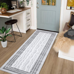 Garvee 8x10 Area Rug Modern Bordered Print Low Pile Faux Wool Non-Slip Stain-Resistant Machine Washable Living Room Bedroom Dining Room