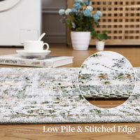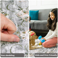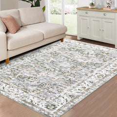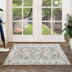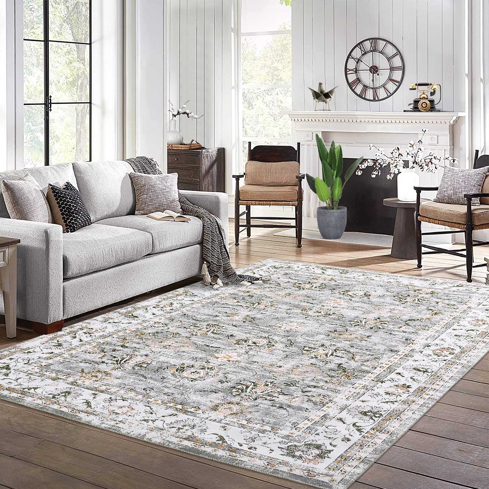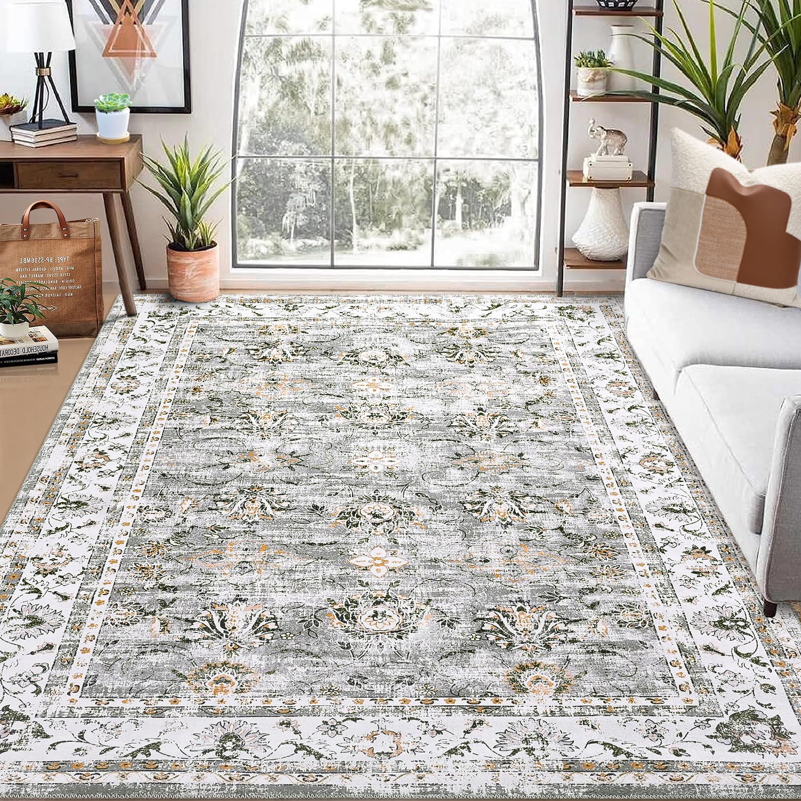 Garvee Oriental Grey-Green 8x10 Vintage Distressed Floral Medallion Rug, Washable Non-Slip Stain Resistant Traditional for Living Bedroom