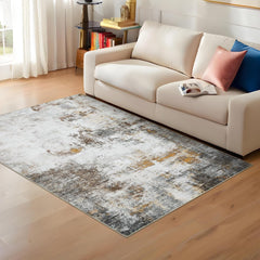 Garvee Abstract Brown 8x10 Modern Washable Area Rug – Soft, Stain-Resistant, Non-Slip, Non-Shedding Low-Pile Carpet for Living Room, Bedroom, or Office