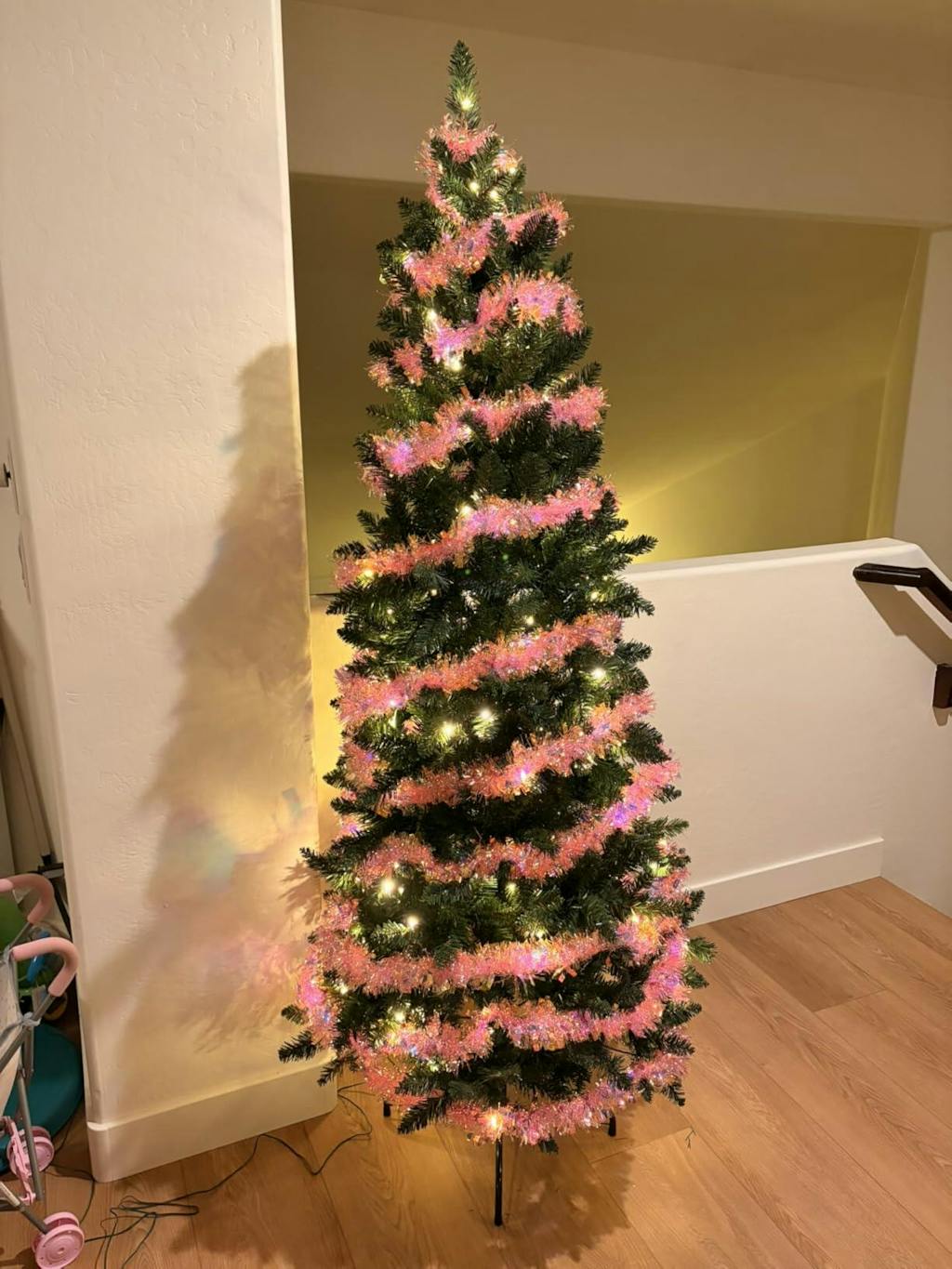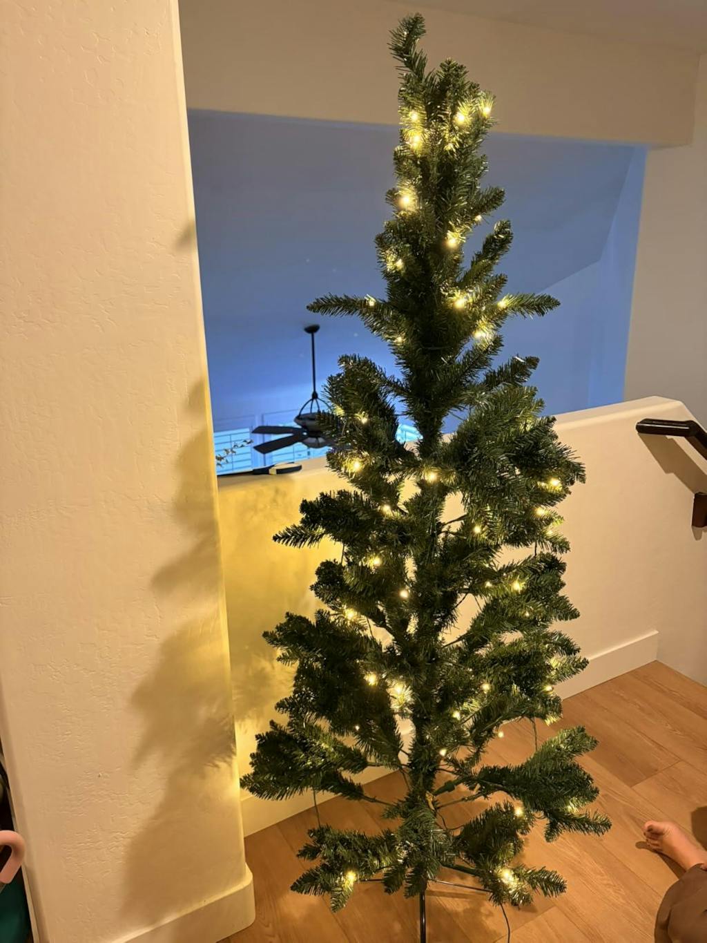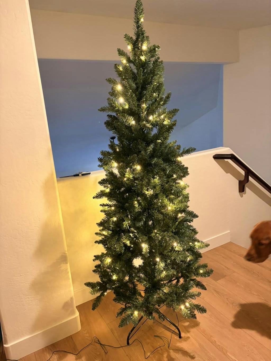 Garvee 9ft Pre-Lit Artificial Flocked Pencil Christmas Tree, Xmas Tree with LED Lights, Slim Artificial Holiday Trees, Christmas Decorations for Office, Home, Holiday
