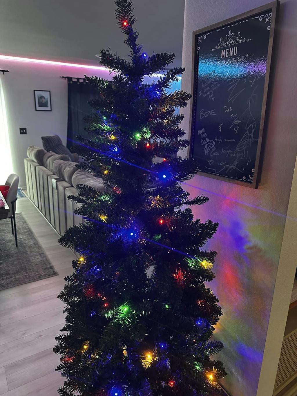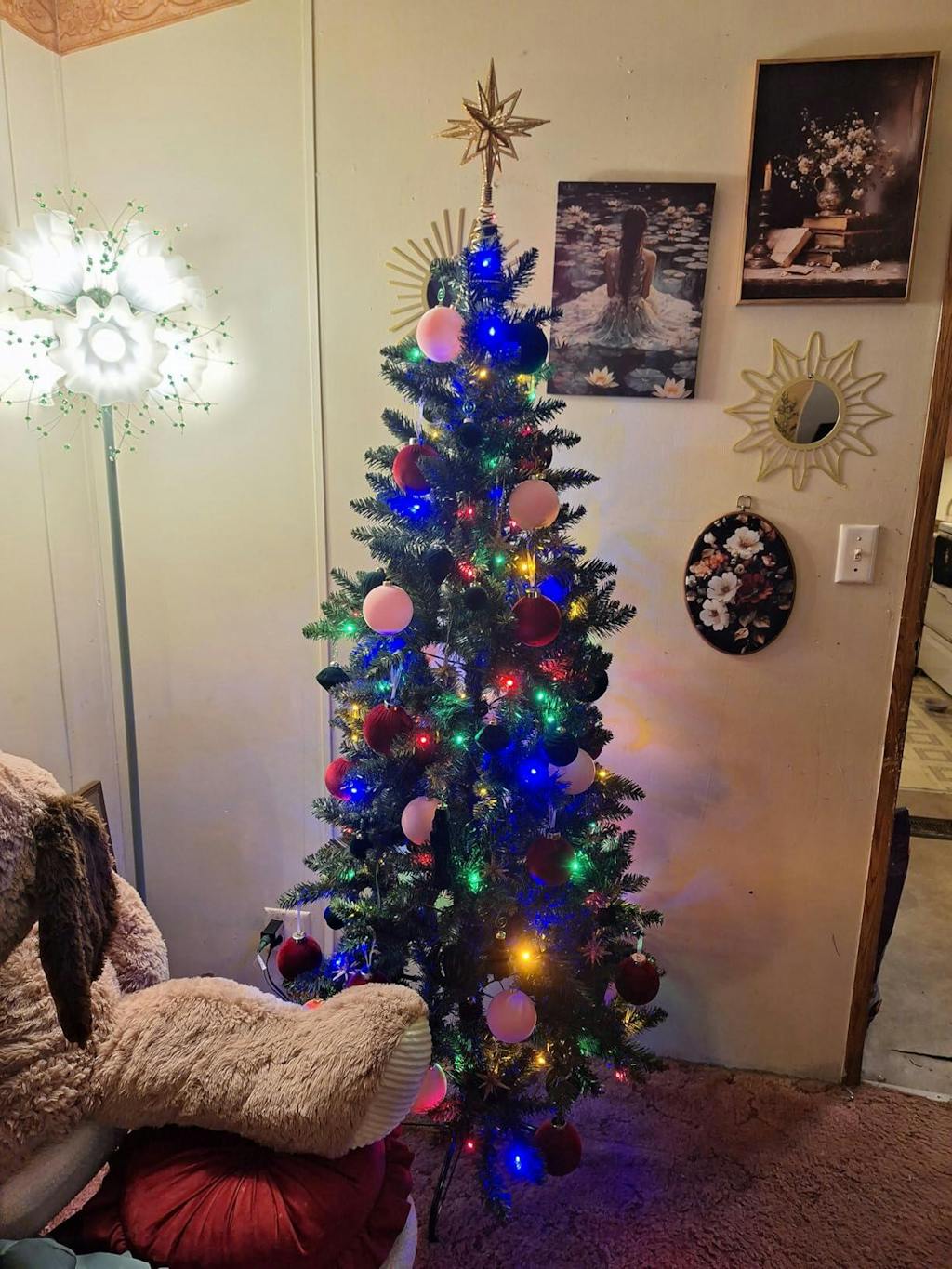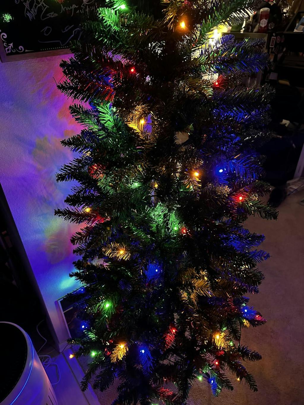 Garvee 9ft Pre-Lit Artificial Flocked Pencil Christmas Tree, Xmas Tree with LED Lights, Slim Artificial Holiday Trees, Christmas Decorations for Office, Home, Holiday