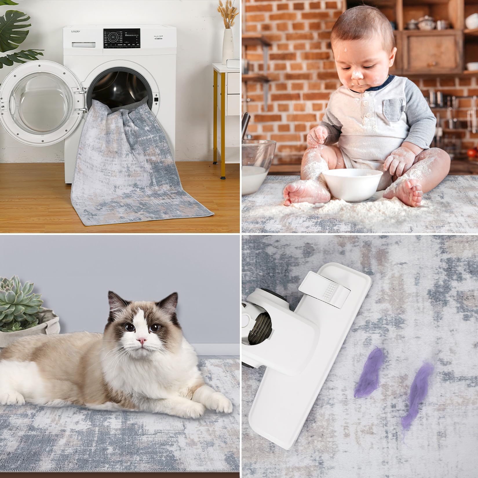 Garvee 9x12 Area Rug Large Modern Abstract Machine Washable Area Rug for Living Room Contemporary Non-Slip Stain Resistant Accent Rug Carpet for Dining Room Office Bedroom Decoration, Grey/Brown