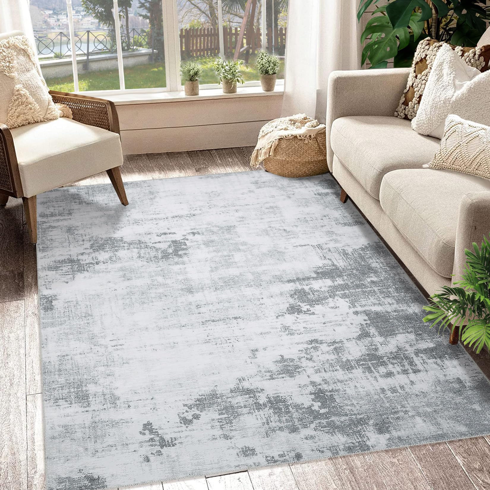 Garvee 9x12 Area Rug Large Modern Abstract Machine Washable Area Rug for Living Room Contemporary Non-Slip Stain Resistant Accent Rug Carpet for Dining Room Office Bedroom Decoration, Grey