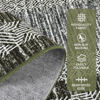 Garvee Bordered Green 9x12 Modern Area Distressed Rug Soft Non Shedding Floor Carpet, Geometric Rug, Washable Non Slip Rug, Low Pile for Living Room, Bedroom