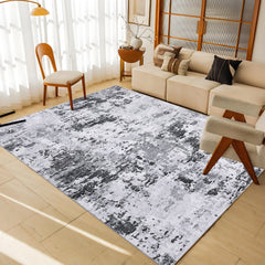 Garvee Abstract Area Rug Light Grey 5x7 Washable Area Rug Modern Abstract Print Bedroom Rug Non-Slip Ultra Thin Low-Pile Accent Carpet Splash Ink Design Floor Cover Office Carpet for Living Room Entryway
