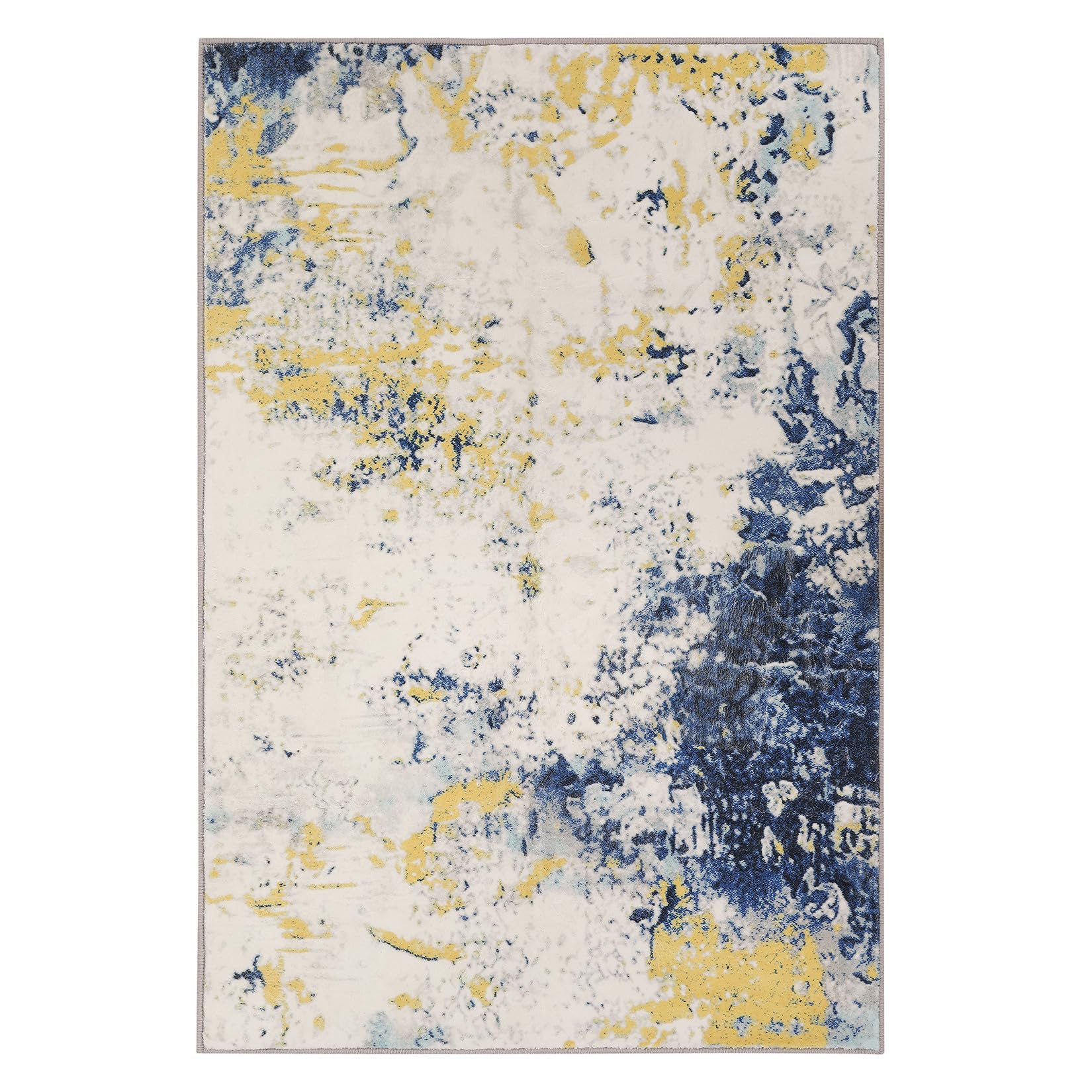 Garvee Abstract Modern Yellow Washable Rug 9x12 - Foldable, Non-Slip, Stain-Resistant, Non-Shedding, Soft Floor Mat for Living Room, Bedroom, Dining Room, Office