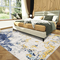 This rug features an abstract modern design, adding a contemporary and artistic flair to your living space while serving as a stylish focal point in any room. The combination of yellow and blue hues adds vibrancy and a contemporary color scheme to your living space.