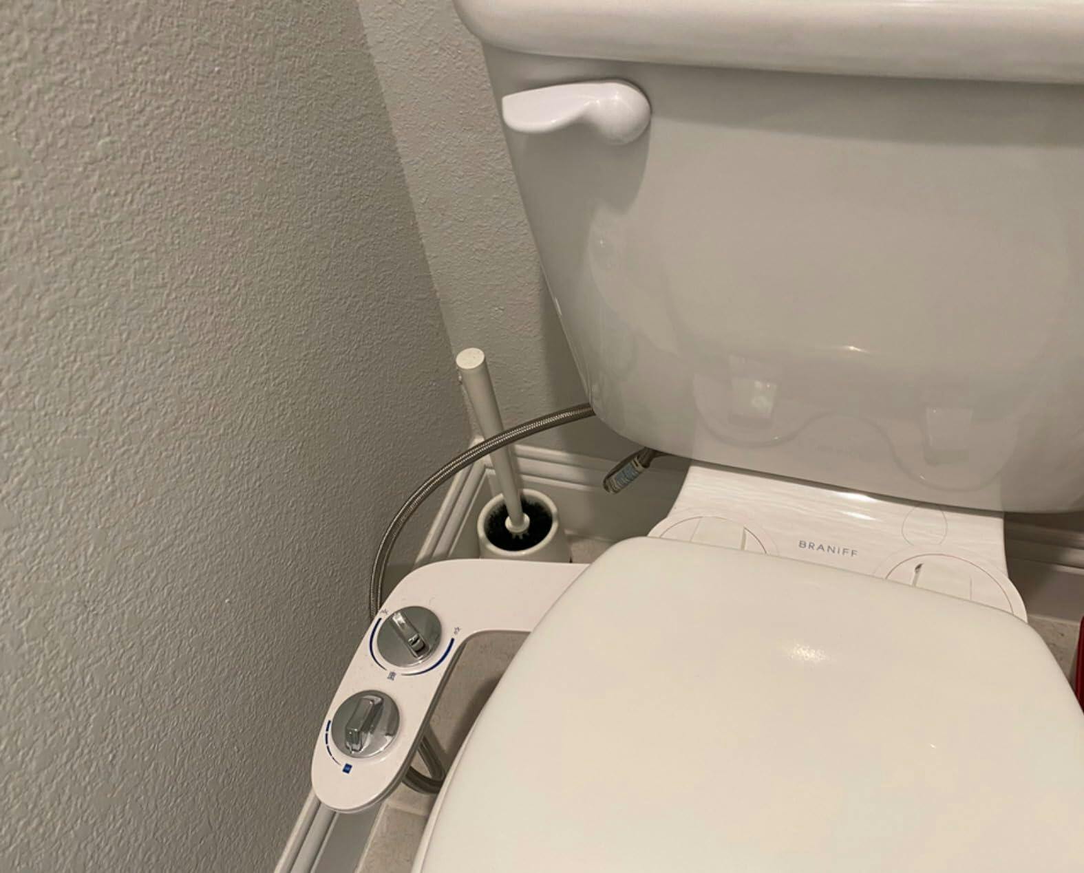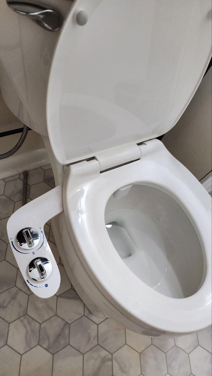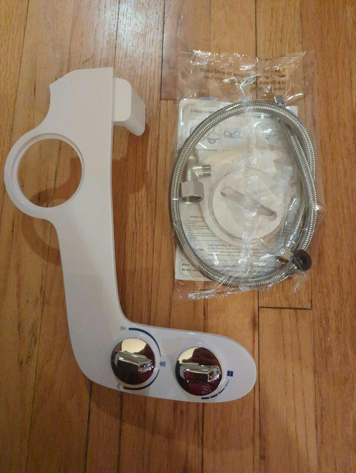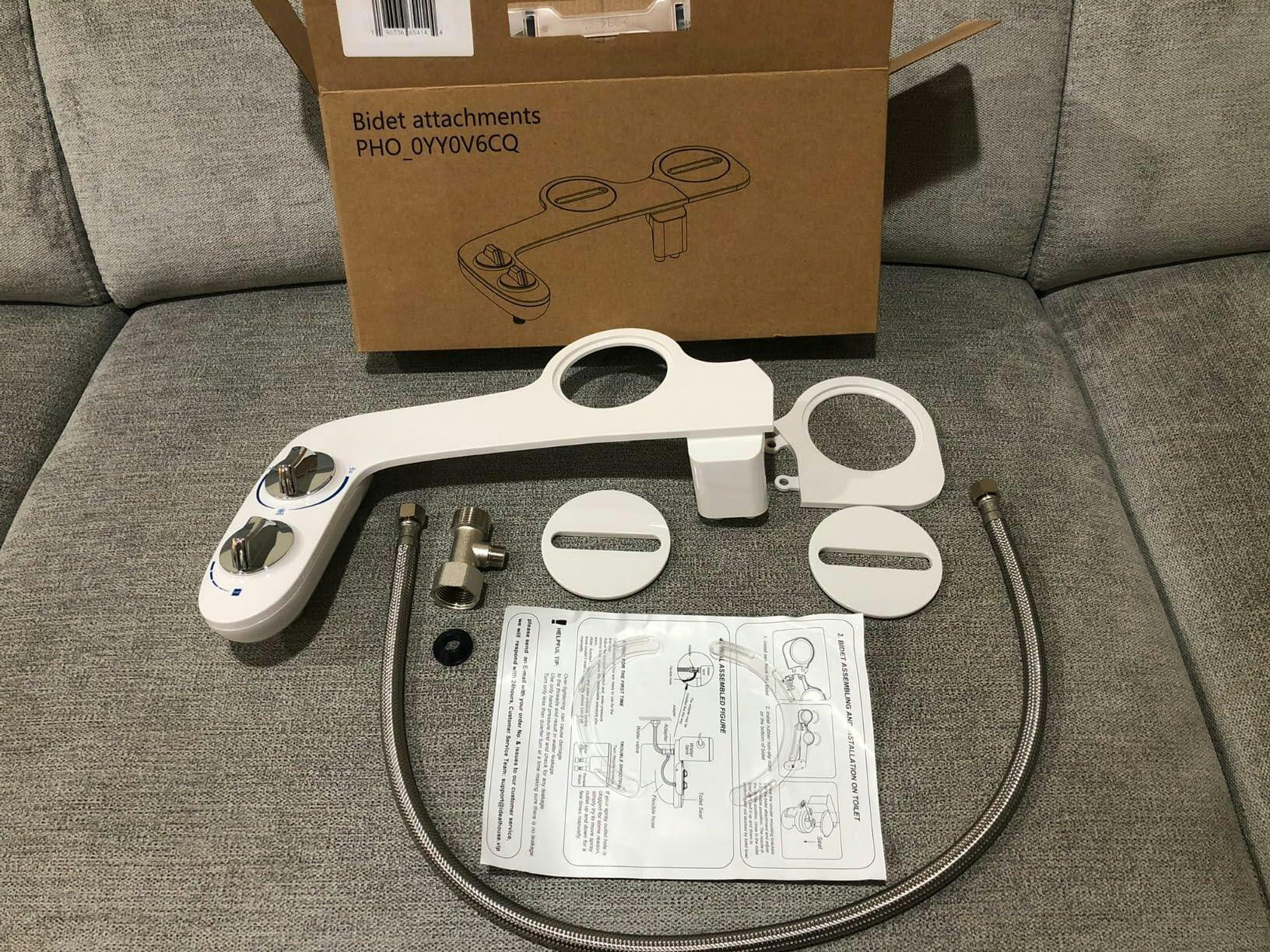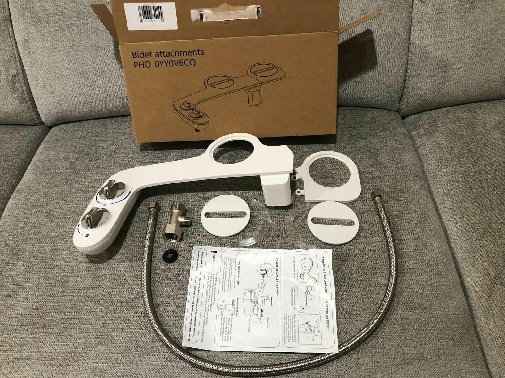 Garvee Accesorio para bidé para inodoro, doble boquilla autolimpiante no eléctrica (lavado femenino/bidé), bidé de inodoro con rociador de agua fría fresca para inodoros existentes con control de presión ajustable