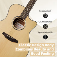 Garvee Acoustic Guitar,41"Acoustic Guitar Kit Full Size Steel String Cutaway Grand Auditorium Guitar with Upgraded Gig Bag, Tuner, Strap, Strings, Picks, Capos,Right Hand,Natural