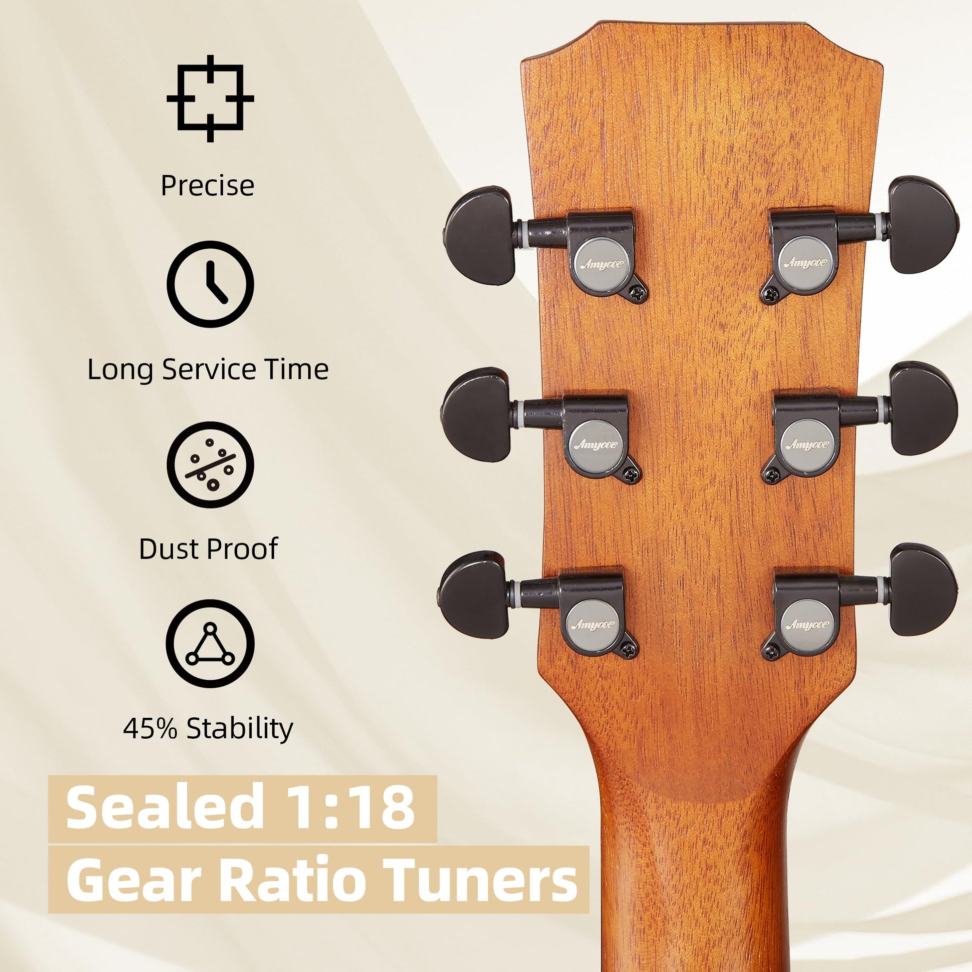 High-quality alloy metal tuning machines with 18:1 gear ratios ensure accurate and stable tuning, keeping your guitar sounding great for longer.