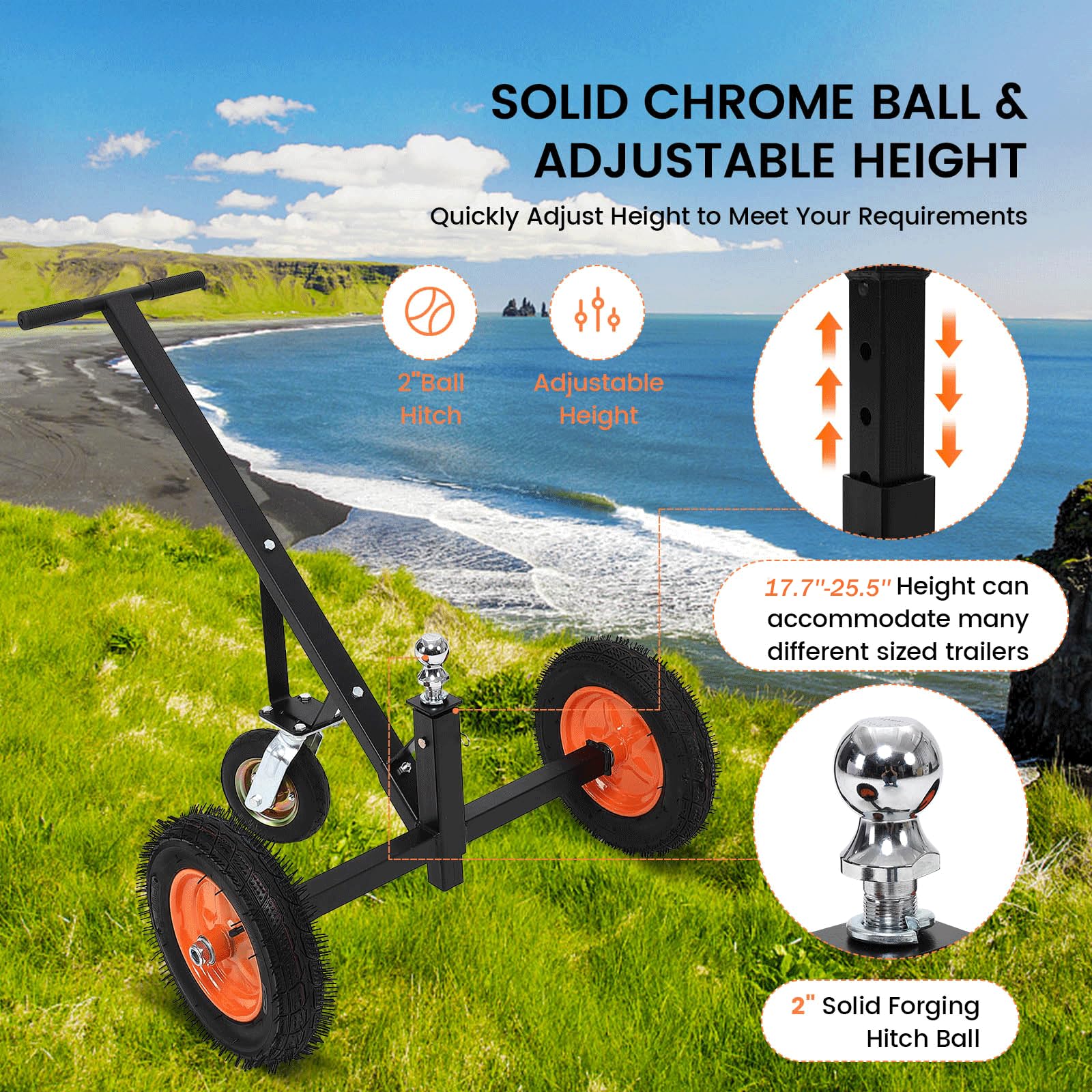 Garvee Adjustable Trailer Dolly with 1000lbs Weight Capacity, Boat Trailer Dolly with 2 Inch Ball & Pneumatic Tires, 17.7''-25.5'' Adjustable Height & Universal Wheel, for Moving Car RV Trailer