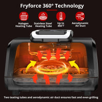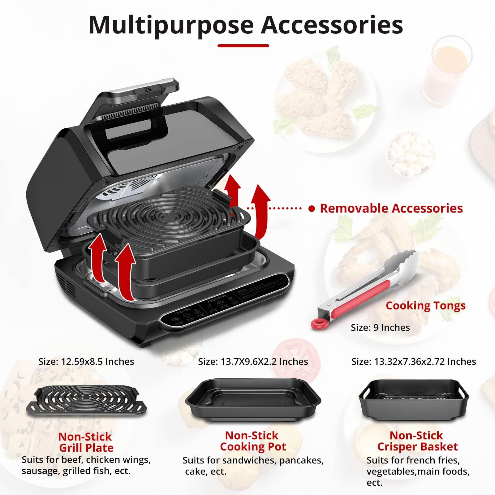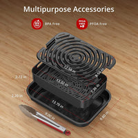 Grill 6 steaks or air fry 2lbs fries. 4 non-stick accessories. All-in-one design for 2-5 people.