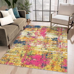 Garvee Washable Rug Modern Abstract Rug, 9x12 Rug Living Room Rug Non Slip Soft Colorful Floor Carpet Indoor Home Decor for Nursery Kitchen Dining Room Office, Pink/Yellow