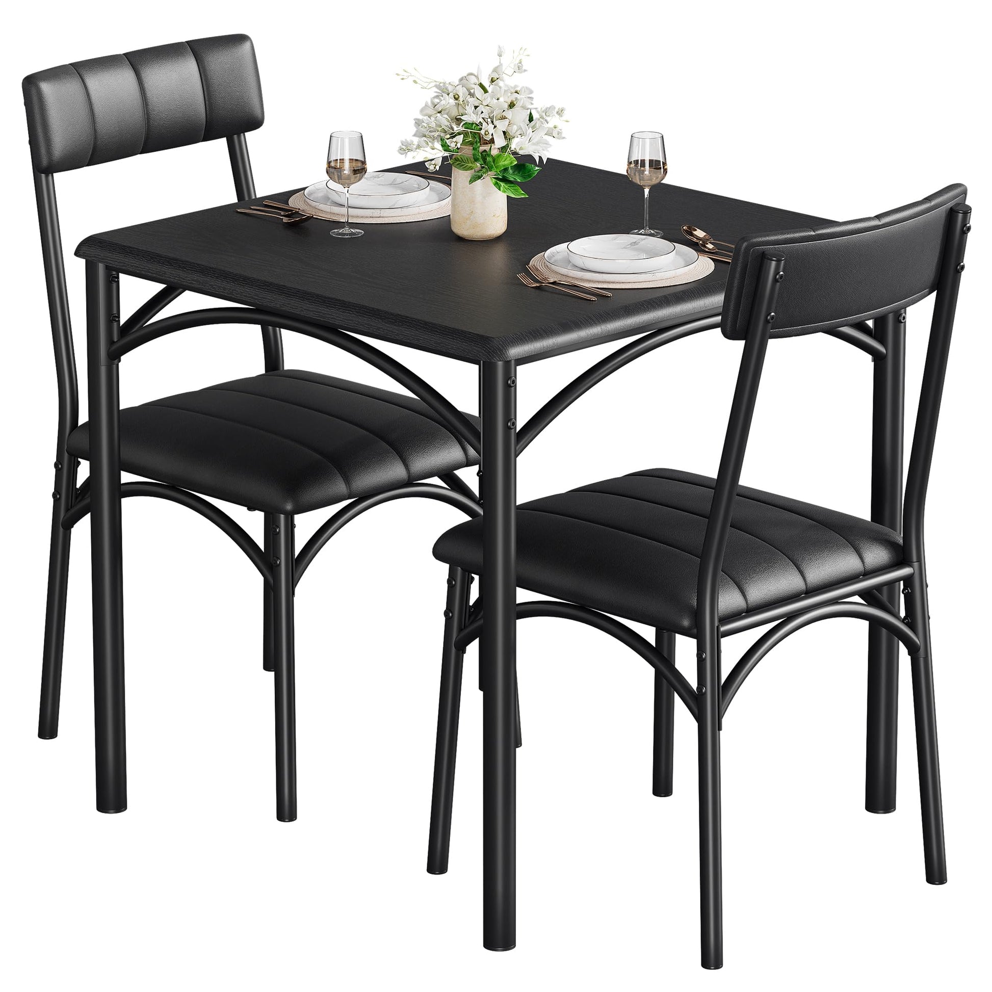 Garvee Dining Table Set for 2, Kitchen Table with 2 Upholstered Chairs, 3 Piece Square Dining Room Table Set, for Small Space, Apartment, Home, Kitchen, Black