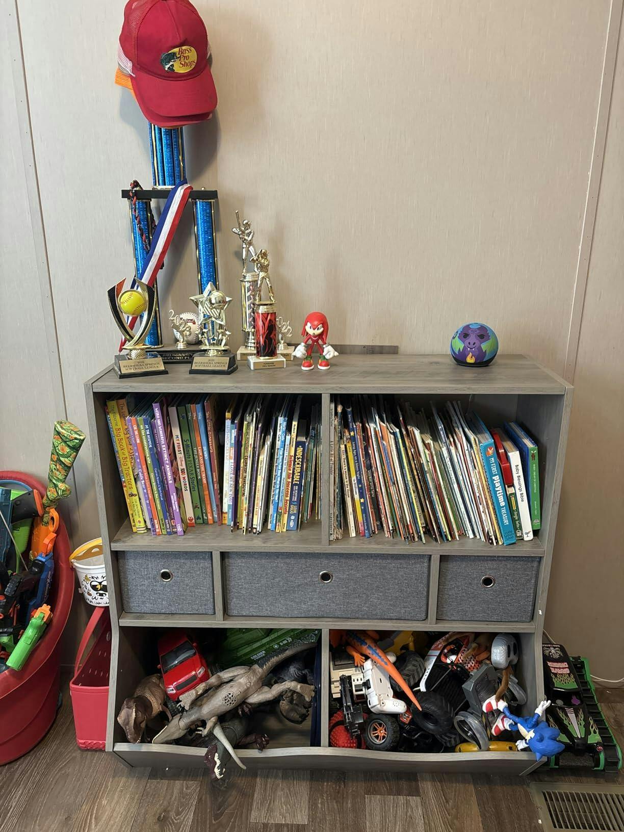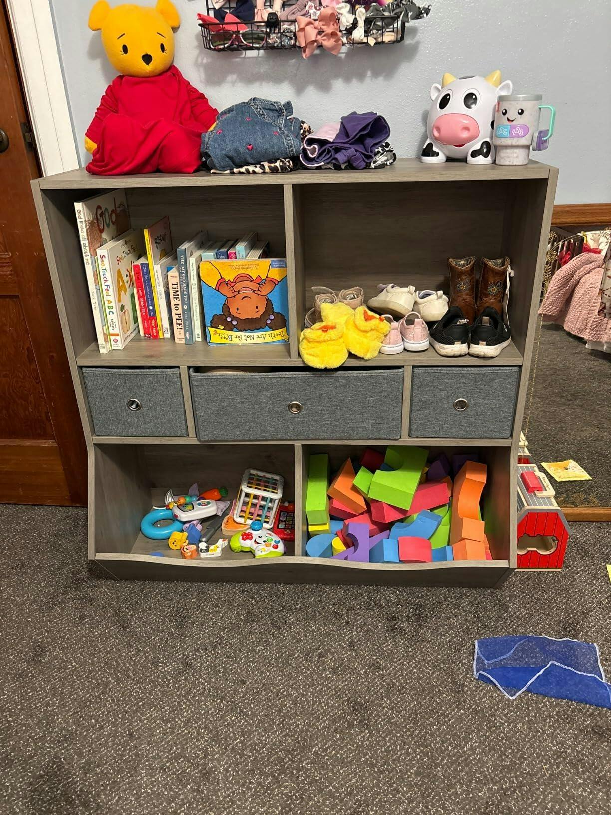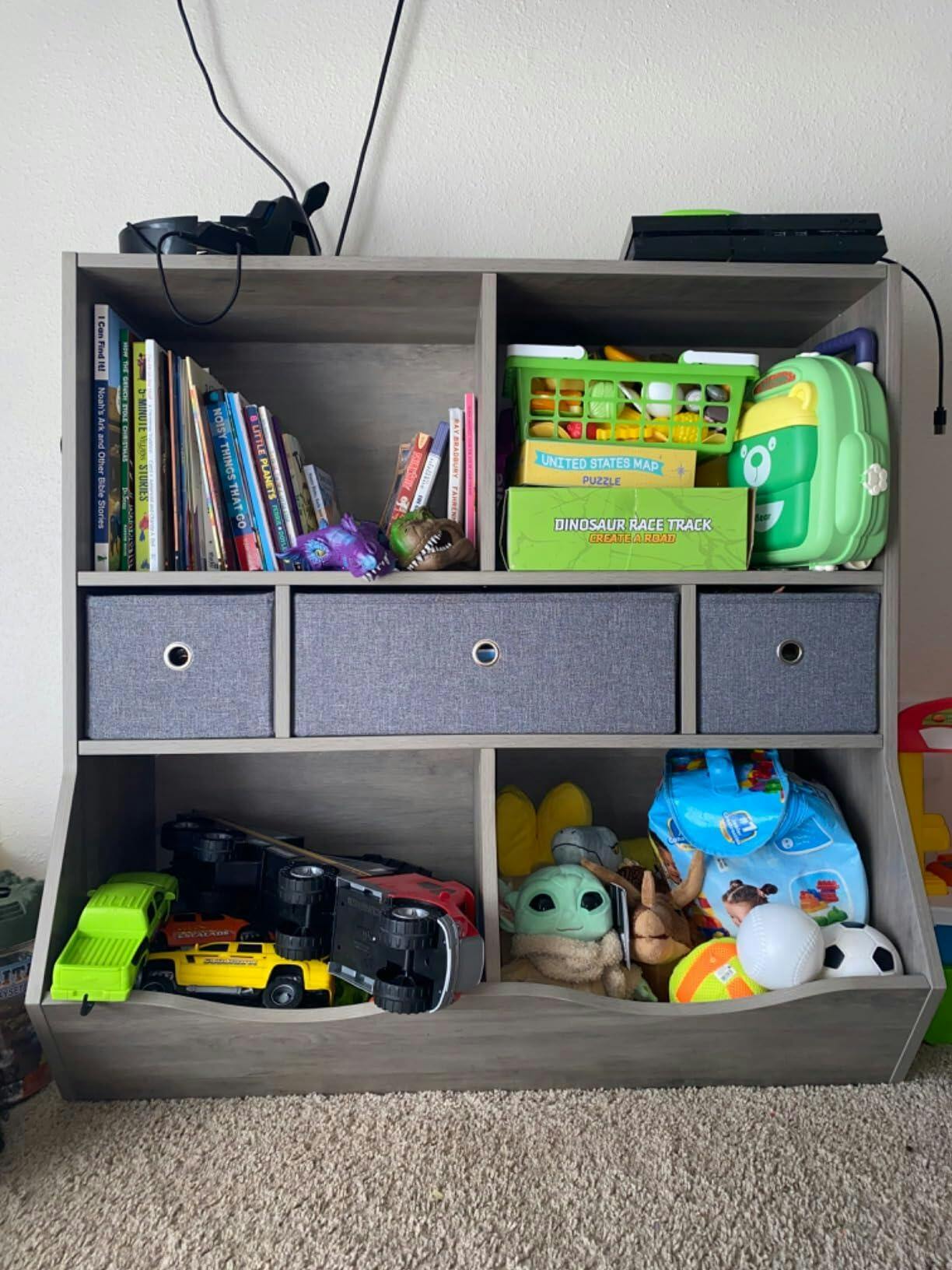 - 【Multi-functional Storage】With 2 open compartments for storing children's favorite books and notebooks, 2 tilted storage bins for blocks, toy cars, dolls, and 3 removable drawers of different sizes for storing art supplies, Rubik's cubes, small toys, etc., this kids toy storage organizer keeps children's rooms tidy and organized, avoiding scattered toy boxes everywhere.