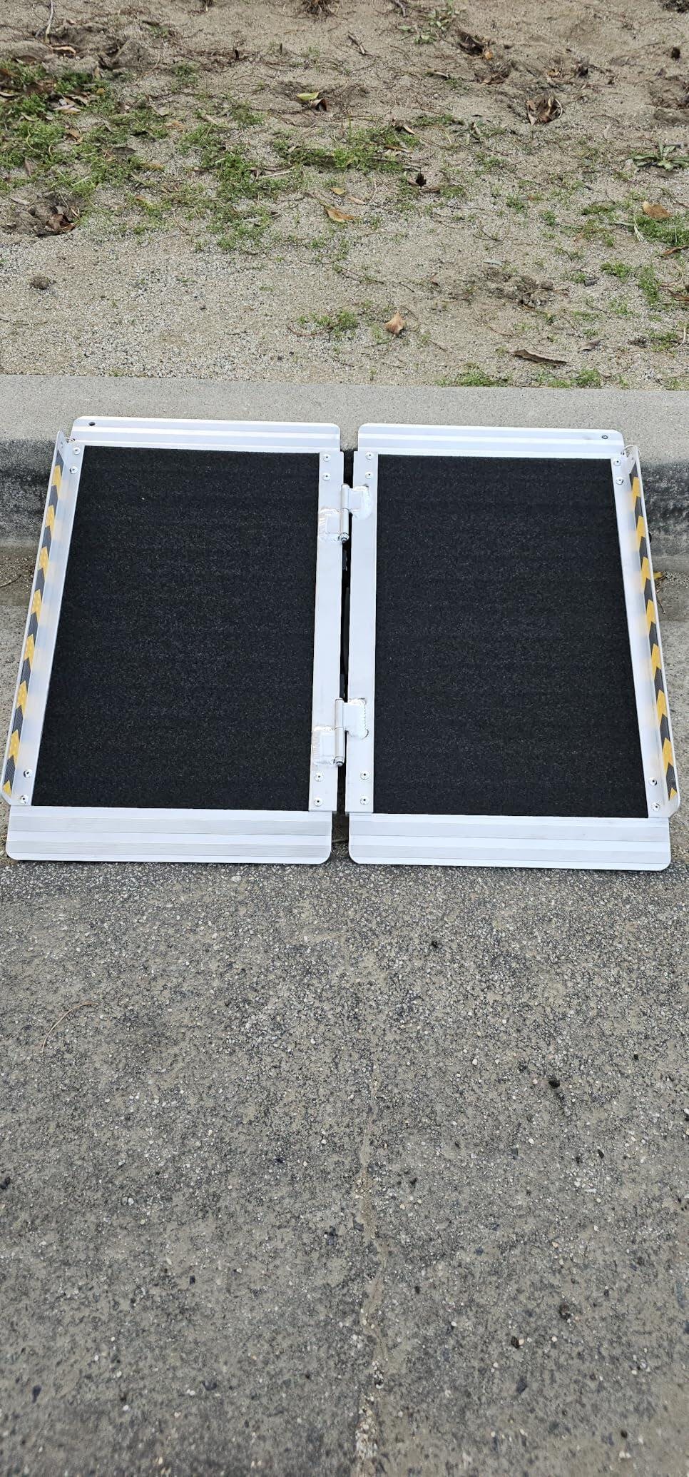 - 【All-Weather Durability & Visibility】Built to last, this ramp features a corrosion-resistant stainless steel hinge for reliable performance indoors and out. Reflective stickers on both sides enhance visibility in low-light conditions, offering peace of mind and safety day and night.