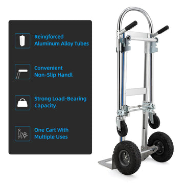 Garvee Heavy Duty Aluminum Folding Hand Truck, Convertible 4-Wheel and 2-Wheel Dolly Cart, Industrial Collapsible Cart for Office Moving