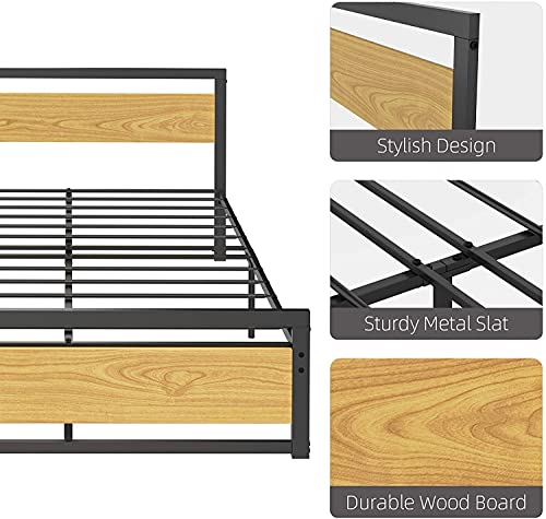 Garvee Metal and Wood Bed Frame with Headboard and Footboard Full Size Platform Bed with Storage Strong Metal Slat Support No Box Spring Needed Easy to Assemble