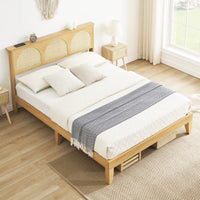 Elevate your bedroom decor with our elegant and modern bed frame. Featuring LED lights, a rattan headboard, and solid wood construction, it's the perfect blend of style and durability.