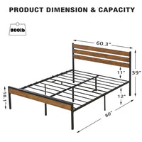 Garvee Queen Size Bed Frame with Rustic Vintage Wood Headboard, Metal Slats Support, Mattress Foundation, No Box Spring Needed, Easy Assembly