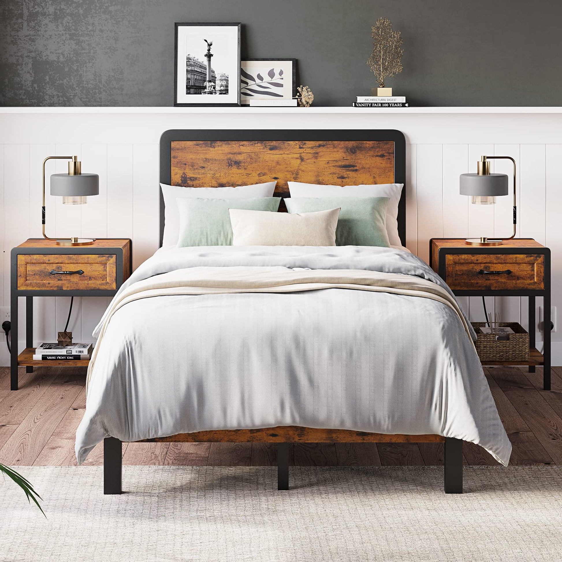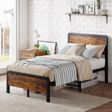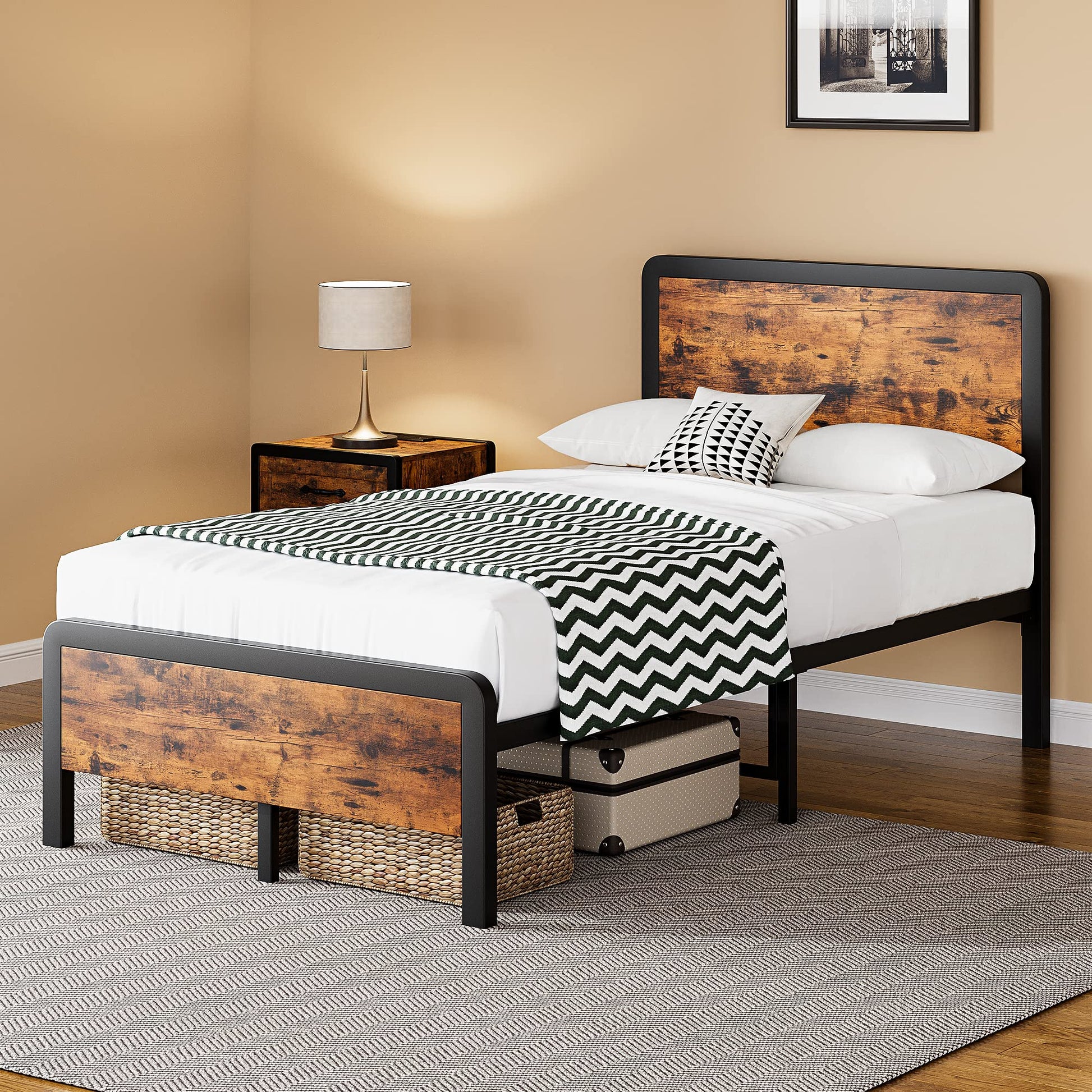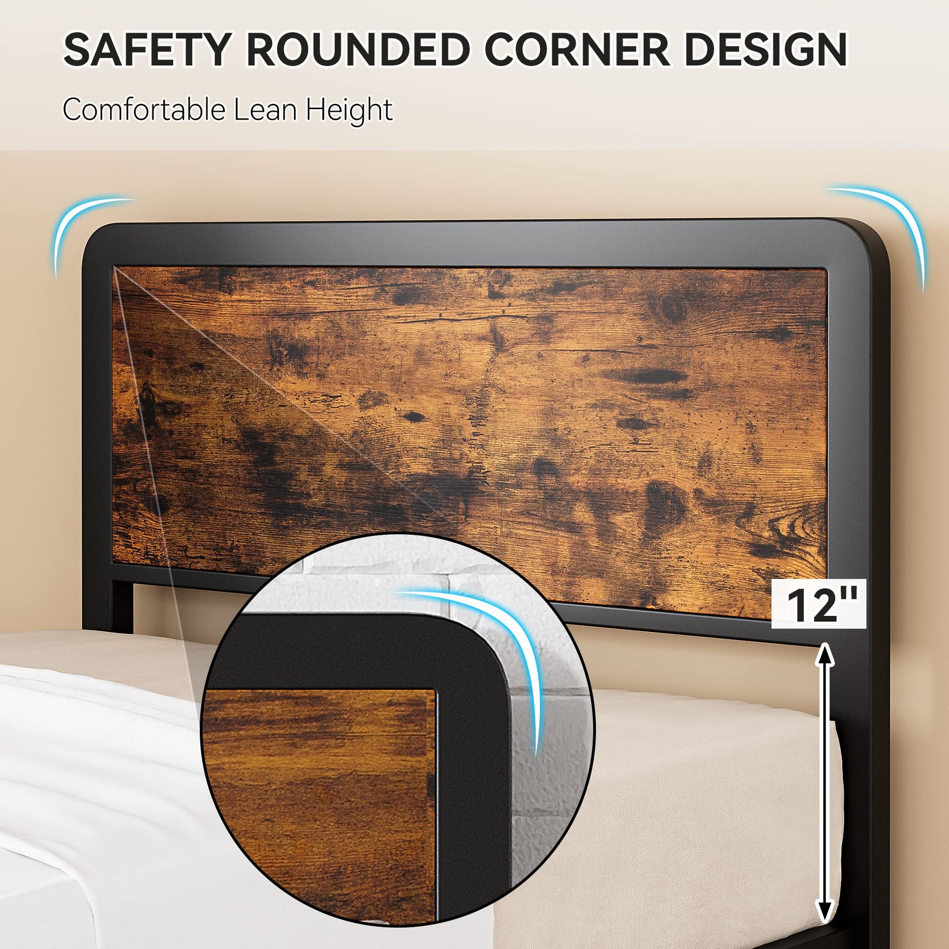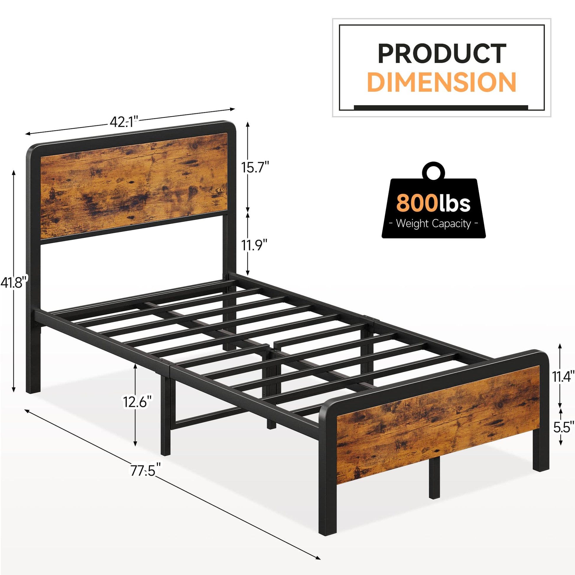 Garvee 12" Twin Metal Bed Frame + Wooden Headboard & Footboard + 800lbs Capacity + Non-Slip & Noise-Free + Vintage Brown + Under Bed Storage + Bedroom