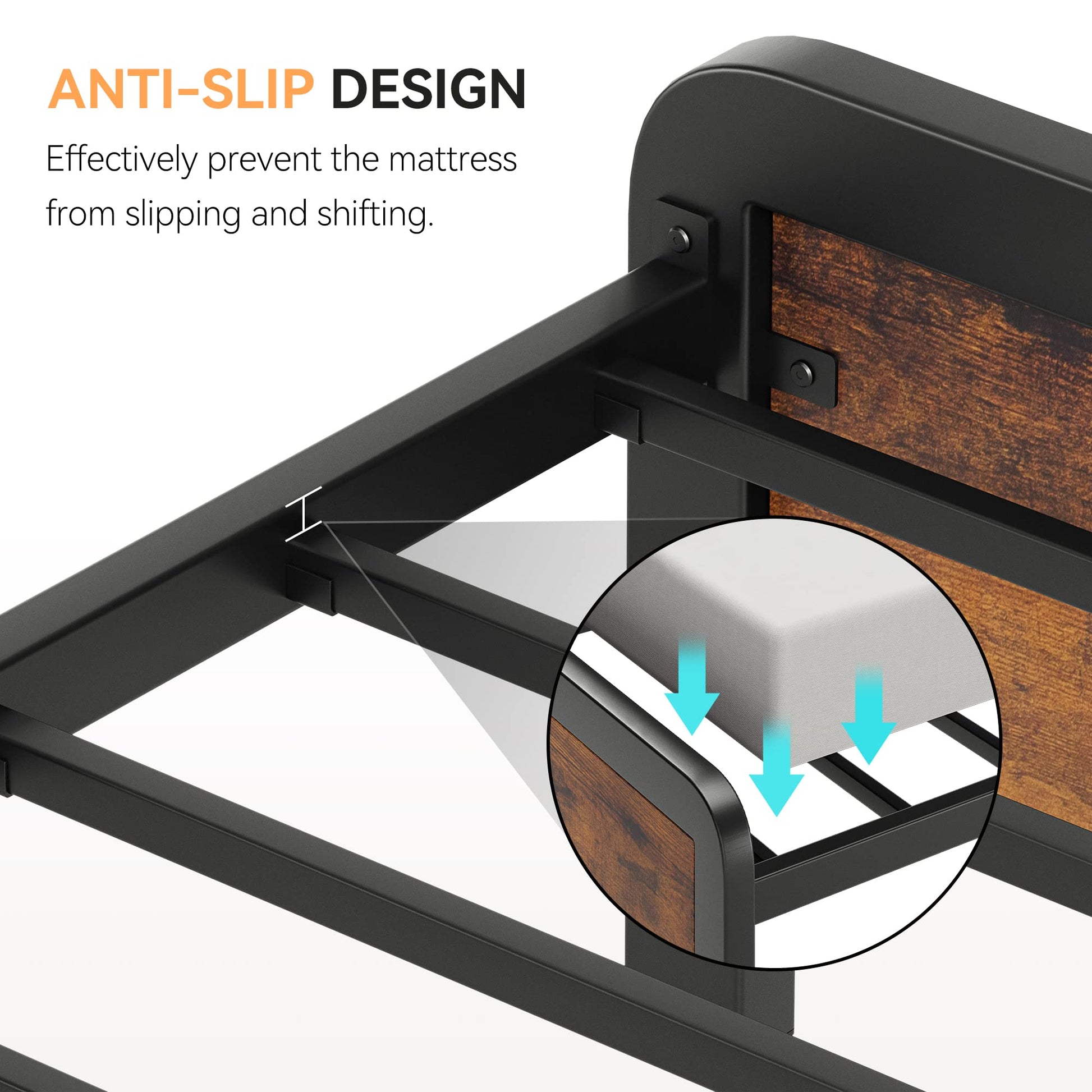 With its 800lbs weight capacity, non-slip design, and noise-free construction, this bed frame combines functionality with comfort. The rounded corners ensure safety, making it suitable for all ages.