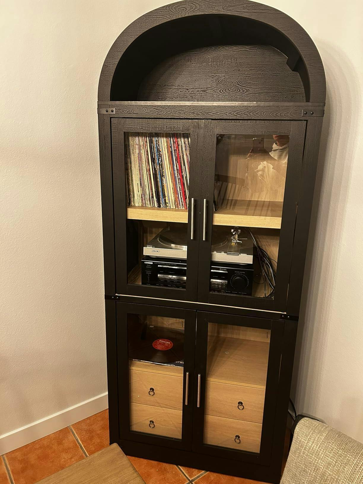 - Multi-Functional Use: This arched cabinet with doors and drawers adapts to diverse needs, It can be used as a kitchen or dining room pantry cabinet, an open display rack of collections in your living room, or a bookshelf in the study room or home office. It also fits perfectly into the bedroom, dining room, apartment, bathroom, balcony, and any other space.