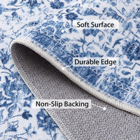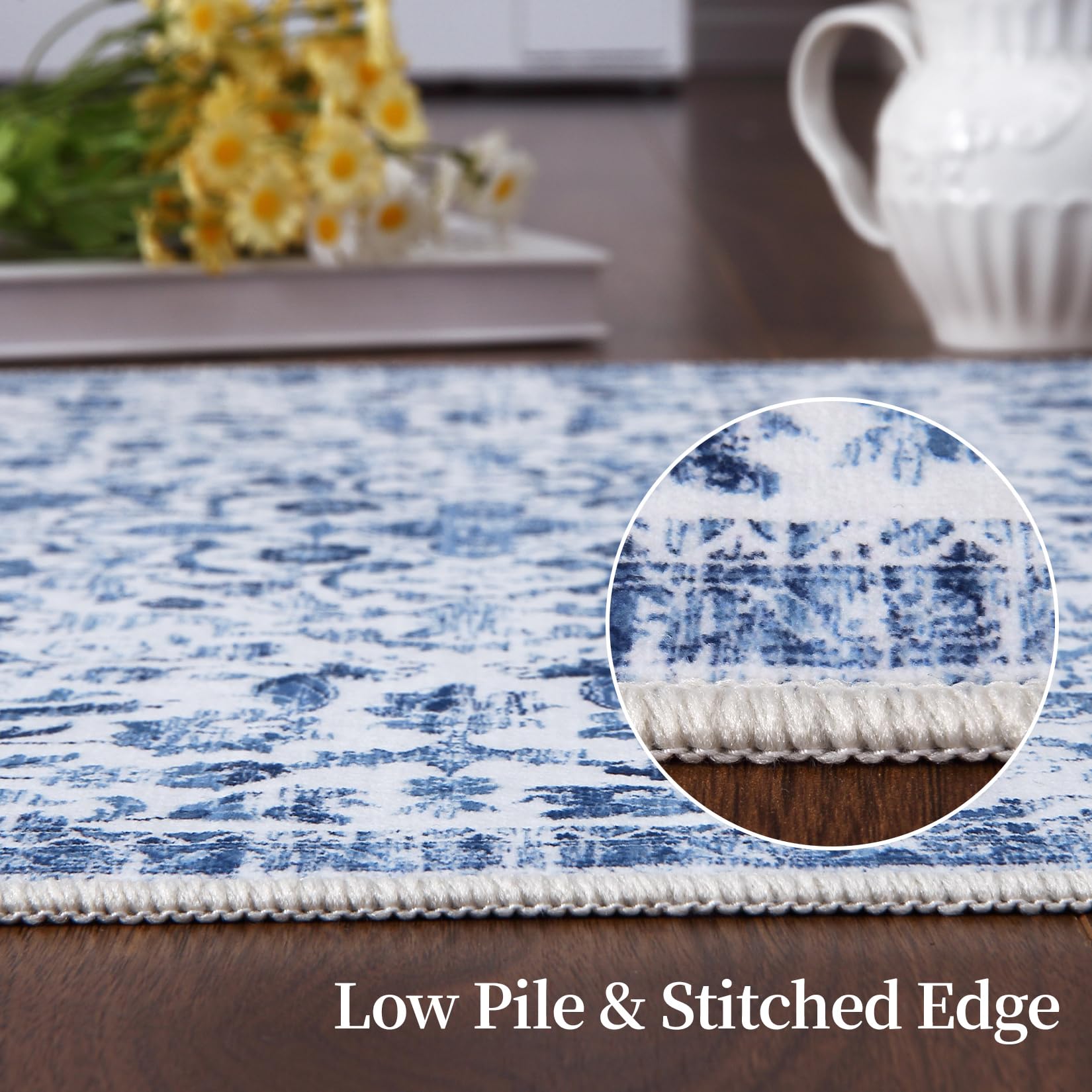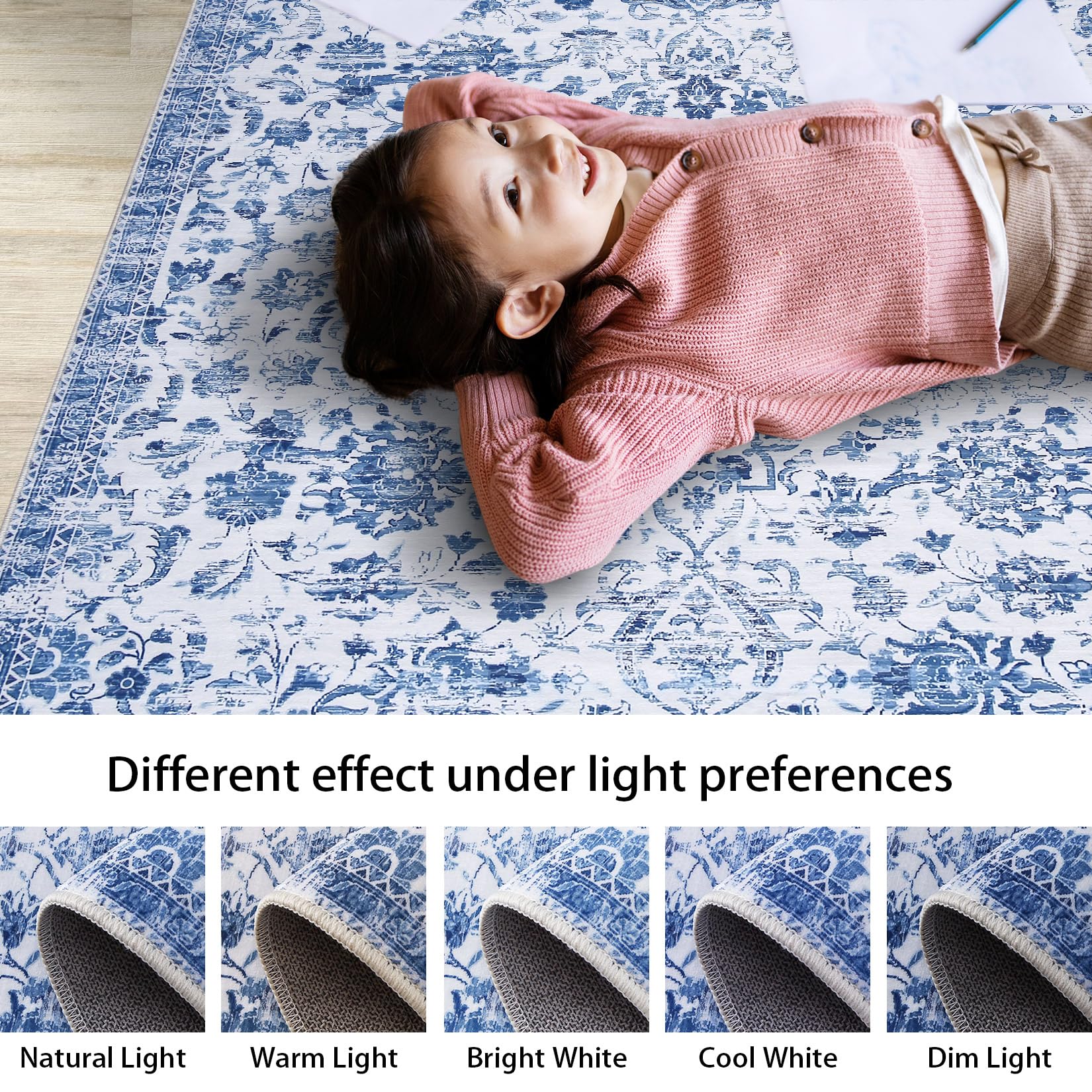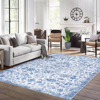 Garvee Area Rug 10x13 Extra Large Rug Distressed Floral Machine Washable Rug for Living Room, Non-Slip Stain Resistant Accent Rug Vintage Medallion Floor Cover Carpet for Bedroom, Blue