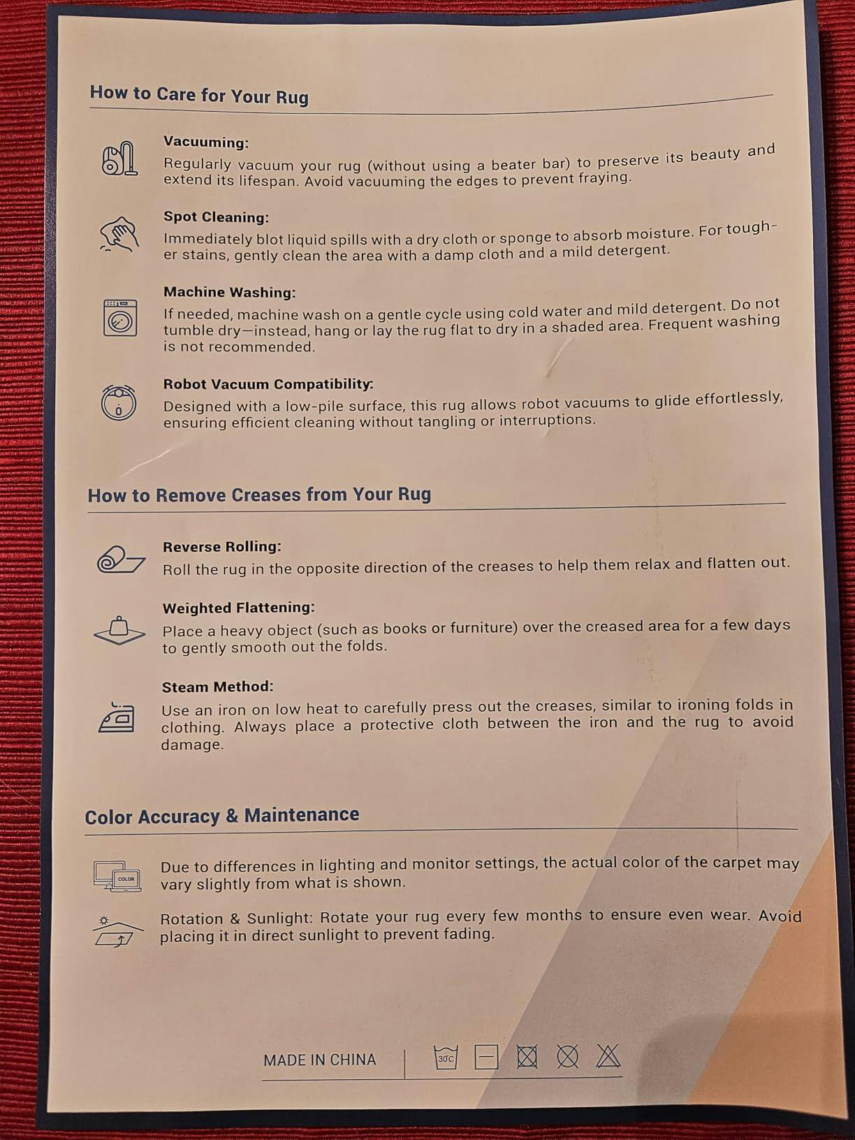 - Effortless Machine Wash Care: Cleaning has never been easier! Simply toss our machine-washable area rug into your washing machine to quickly remove dirt and stains. Perfect for high-traffic spaces like living room rugs or dining room area rugs, it stays vibrant and fresh wash after wash—saving you time while keeping your home looking its best.