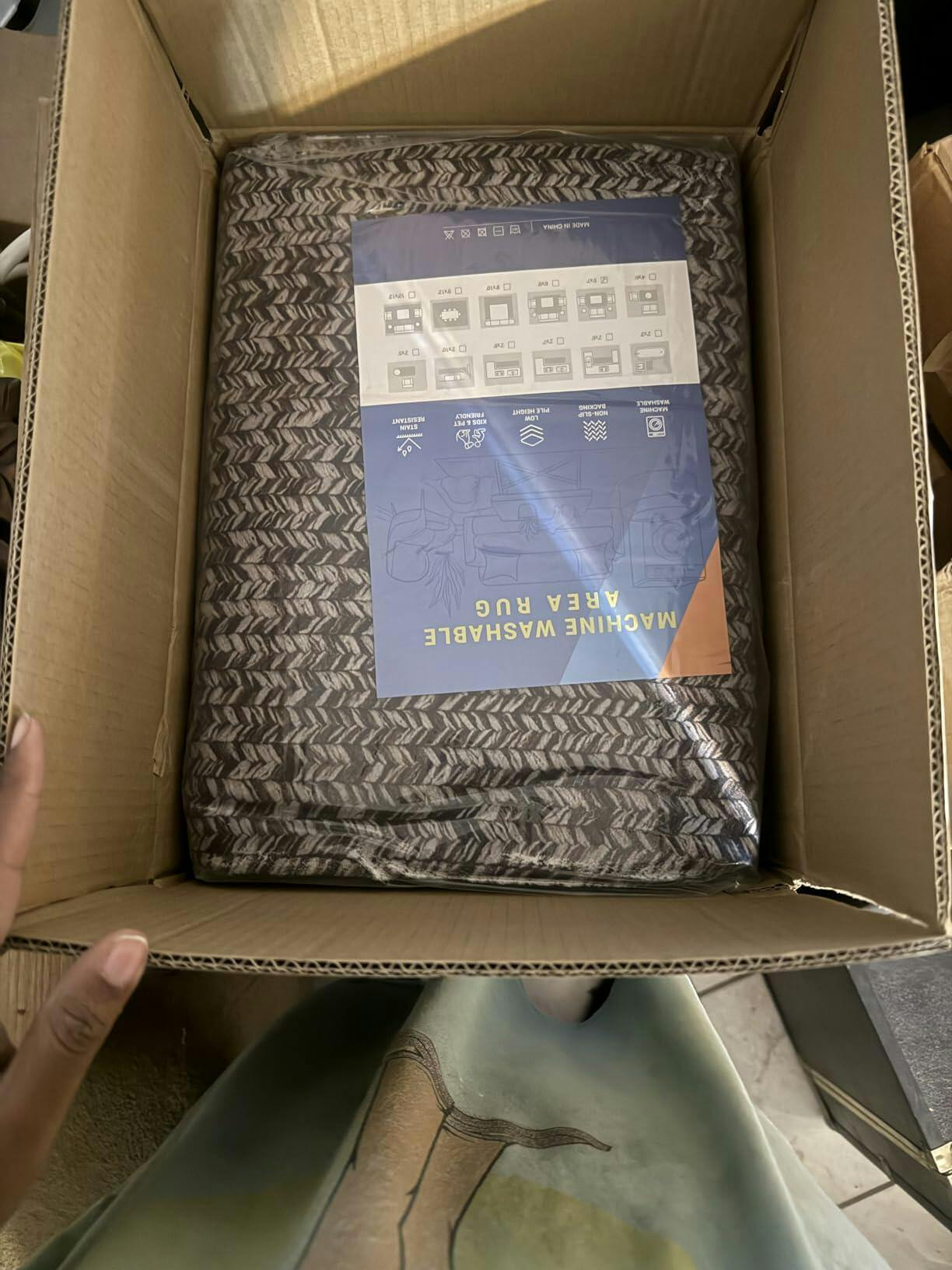 This rug turned out even better than I expected! The size fits my dining area perfectly — it frames the table just right and adds such a cozy touch to the room. It won’t quite work once I add the table extensions, but for the normal setup, it’s spot-on.The fabric is ridiculously soft — almost satin-like! I wasn’t expecting that from a rug, but it feels great underfoot. Even my cat gave it an instant stamp of approval — she came over, flopped right down, and rolled around like it was her new favorite spot. That’s how you know it’s a hit!The color is a beautiful mix of grays with a subtle texture that hides dust or crumbs really well (a big plus for pet owners or busy families). It instantly made the space look more polished and put-together without feeling too formal.My only real complaint — and the reason I gave it 4 stars instead of 5 — is how it was shipped. It came folded, not rolled, which caused a noticeable white line down the center. It looks like the fabric fibers separated a bit where the fold was. I’m hoping that will fade as it lays flat over time, but it’s definitely something to be aware of.Aside from that, I’m really happy with it! It’s soft, stylish, and super comfortable to walk on. Honestly, I keep finding myself barefoot just so I can enjoy the feel of it. Totally worth it — just wish it had been rolled instead of folded for shipping.