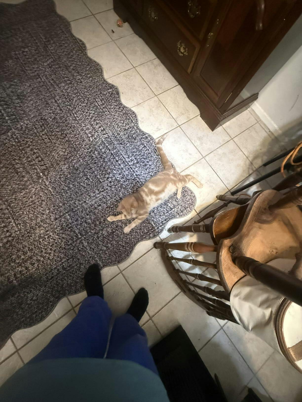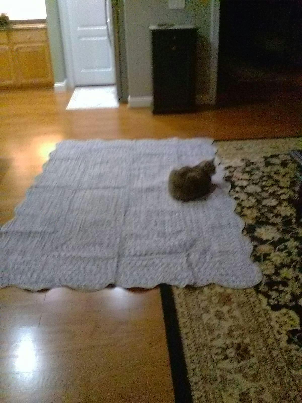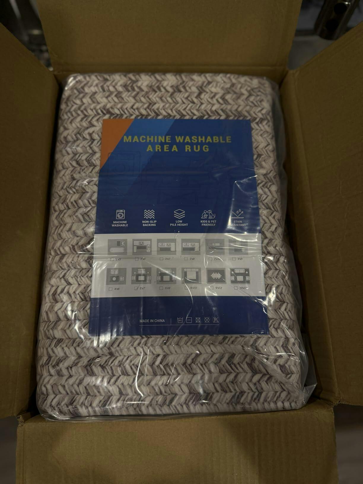 You know a rug is cozy when your cat claims it immediately! The GARVEE Scalloped Printed Rug gets a big thumbs-up from cats. This 5x7 rug is stain-resistant, washable, non-slip, low-pile, non-shedding, and super soft. The light grey braided design is stunning, and the price is unbeatable. The description matches perfectly, and the quality is impressive. Its authentic braided pattern showcases excellent craftsmanship. Simple yet stylish, the scalloped edges add a unique touch. It complements various decors, is lightweight, and folds easily for storage. Washing instructions are provided and recommend a gentle cycle with hang drying. Ideal for pets, kids, and cat naps, this rug is a fantastic find. It exceeded all expectations and is highly recommended! Brand: GARVEE.