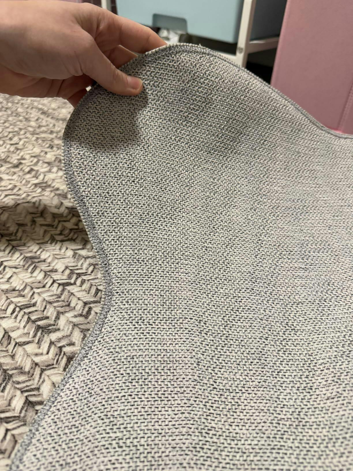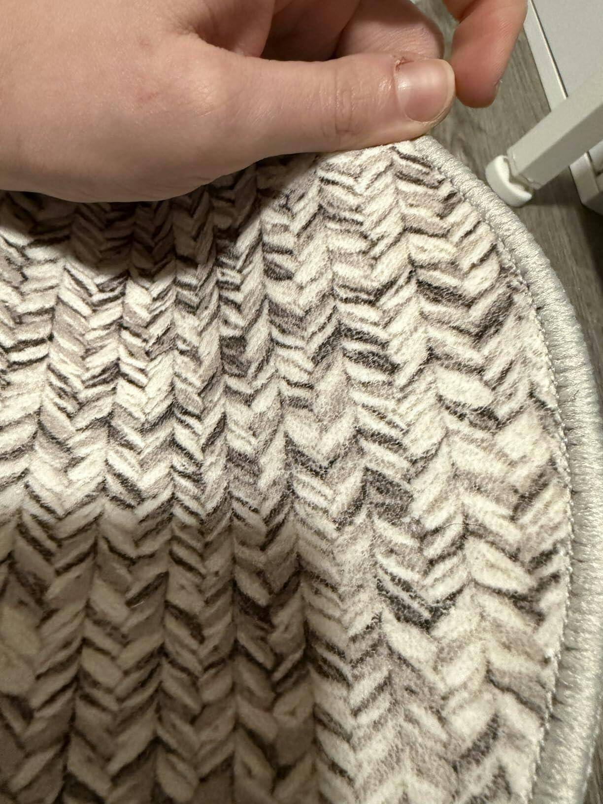 It's my fault for skipping over that this rug is a braided PRINTED rug and not actually braided....oh well. On the plus side, its SUPER soft and the rubber backing is one of the best I have seen on a washable rug. I am using this rug in my craft room so I need it to be able to be cleaned easily and handle the abuse of my and my crafting skills. The colors are a beige/grey/taupe and look very neutral. It looks braided from very far away, but once you really look at it you'll see its just a printed pattern. Knocked a star off because half of the print is waaaaay faded then the other half, which you can see in my video. I know these types of rugs fade quicker than normal because they're just printed fabric, and that's fine, but usually it's not fade right when you open it up lol I do looooove the scalloped edges, though. That's the main reason I got this rug. Overall, its cute and I like how it looks in my space.