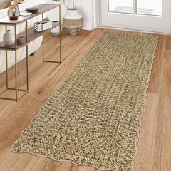 - 【Your New Go-To Rug: Fake Braids + Cute Scallops That Actually Last】Hey, want a rug that looks like you spent hours picking out hand-braided (but cleans like a dream)? This one’s got that cozy, artisanal vibe thanks to its faux-braided printed pattern—plus, those adorable scalloped edges? They instantly make any room feel “put together.” And don’t stress about your pup’s claws or your kid’s roughhousing—this thing’s made with polyester that shrugs off wear… and keeps edges crisp