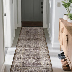 Garvee Area Rug Vintage Floral 2x6 Washable Soft Cashmere Cotton TPR Non-Slip Backing for Living Room Bedroom Bathroom Kitchen