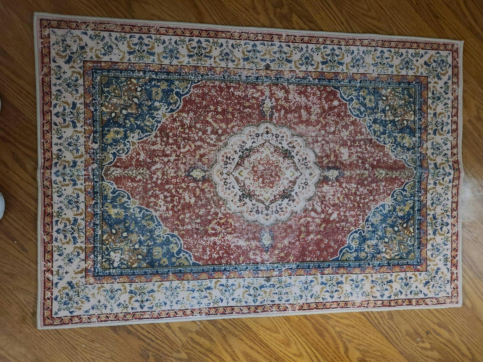 Garvee Boho Vintage Floral Area Rug 2x6 Washable Faux Lamb Velvet Non-Slip Carpet for Living Room Bedroom Bathroom Kitchen Entryway Office