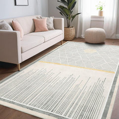 - Modern Geometric Design: This modern rug features a beige background with light gray geometric lines, showcasing a minimalist and modern style. Its warm tones and elegant design seamlessly blend into any space, creating a cozy and harmonious atmosphere.