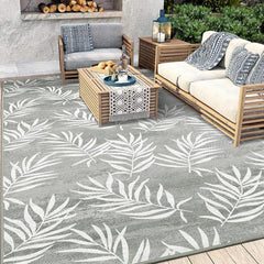 Garvee Area Rug 5"x 8" Outdoor Indoor Rug Modern Leaves Pattern Grey Low Pile Non-Shedding High Traffic Mat