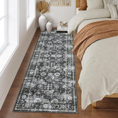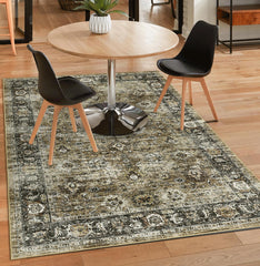- Design and Style: The rug showcases a classic distressed look with a bordered edge that adds a vintage charm. Its printed design complements traditional and interiors, enhancing kitchens, hallways, or entryways with timeless appeal.