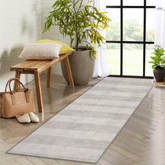 Garvee Modern Easy Area Rug Machine Washable Non-Slip Low Pile Stripe Pattern Rug for Living Room Bedroom Entryway Brown 8'x10'